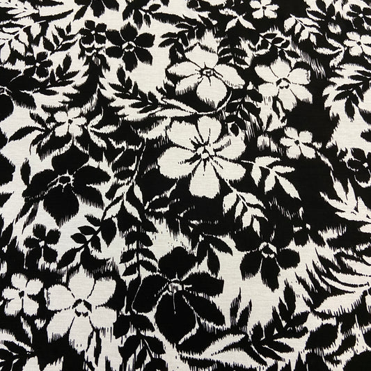 Mustard Ditsy Black White Floral Viscose Elastane Fabric