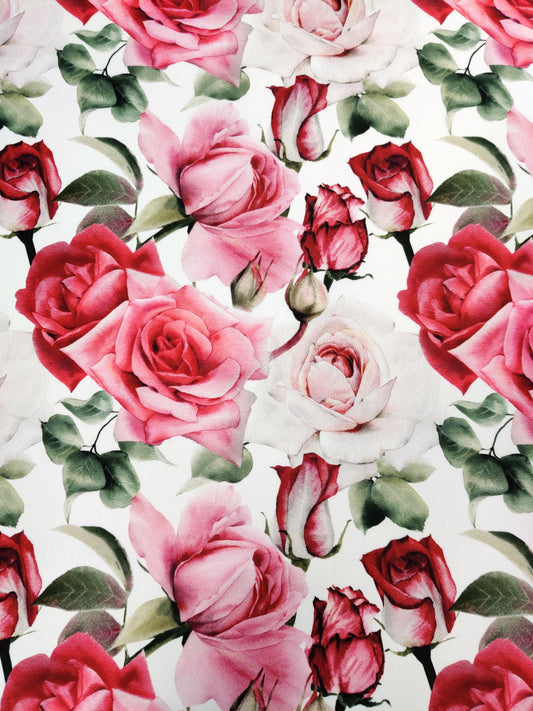 Pink Floral Black Polka Dot Viscose Elastane Fabric