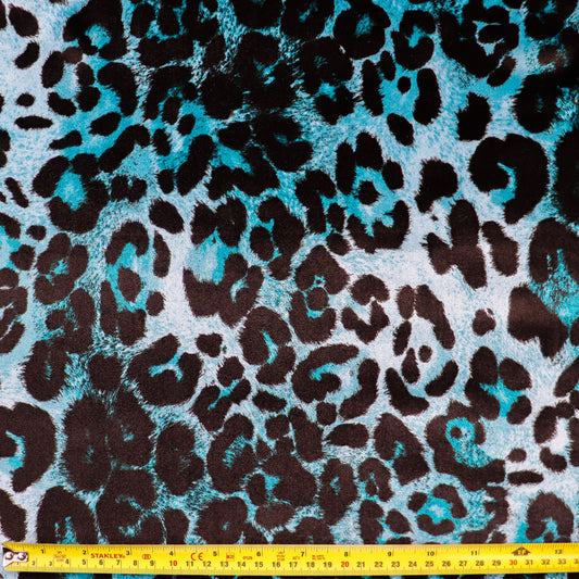 FS1131 Teal Leopard Velvet Stretch Knit Fabric