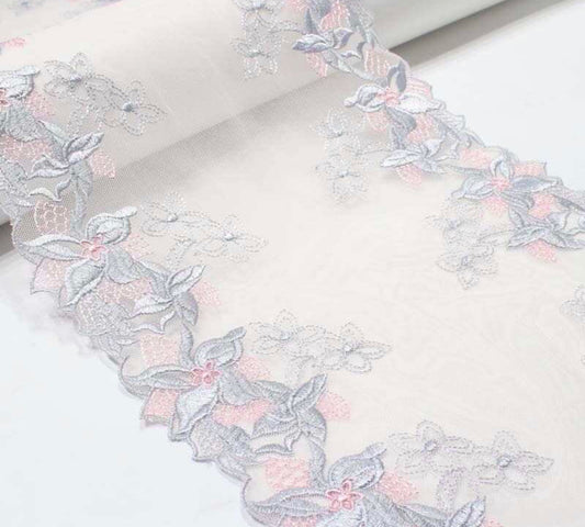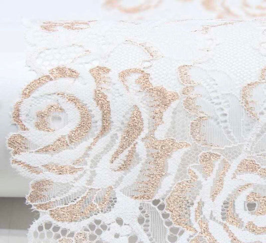 FS1144 White & Gold Floral Stretch Lace Mesh Trim
