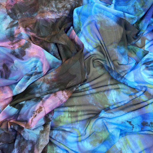 FS1246 Night Owl Tie Dye Print Jersey Stretch Power Mesh Fabric