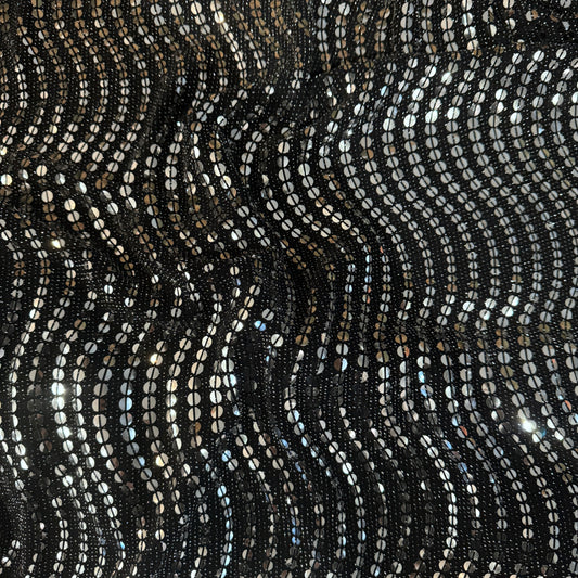 FS1223 Shiny Metallic Foil Silver Circle wave Sequins Lurex Nylon Stretch Fabric