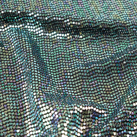 FS1221 Shiny Metallic Circle Sequins Lurex Nylon Stretch Fabric Green Purple Hologram