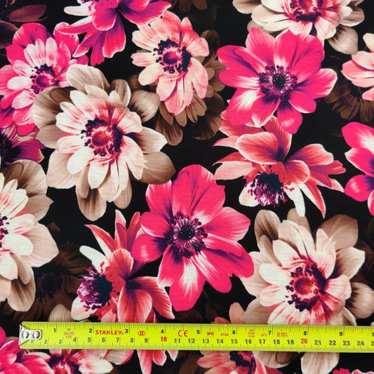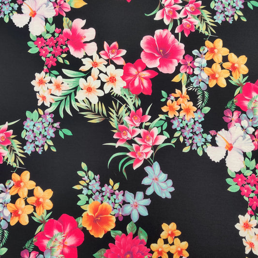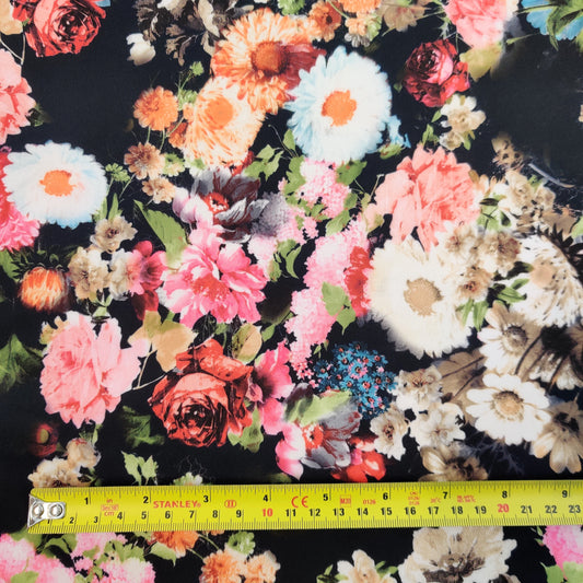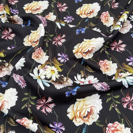 FS550 Skulls Rose Scuba Stretch Knit Fabric Black