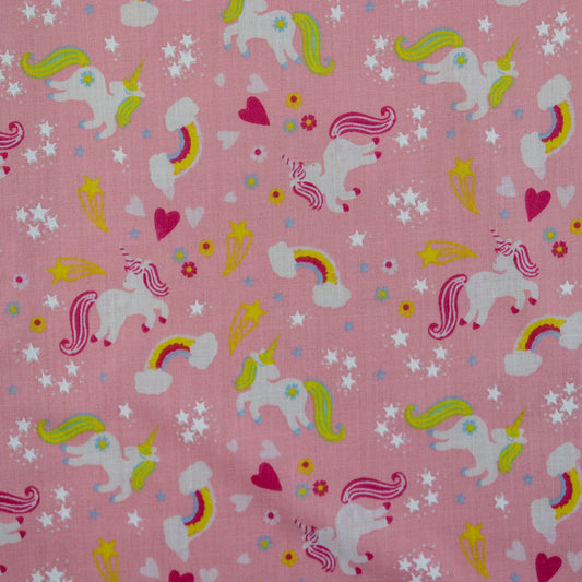 FS770_2 Unicorn Stars Poly Cotton Fabric Pink
