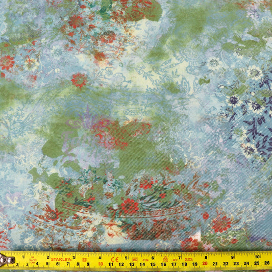 Green Tie Dye Orange Floral Power Mesh Fabric