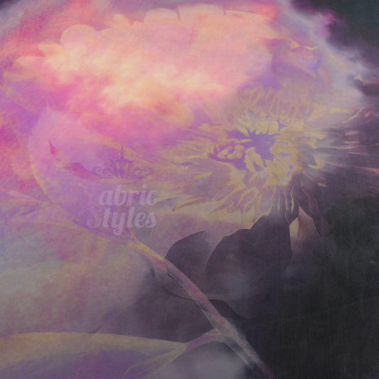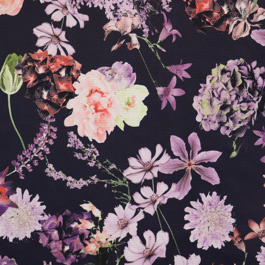 Humming Bird Floral Scuba Stretch Knit Fabric Grey