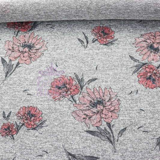 Rose Bouquet Scuba Stretch Knit Fabric Mint