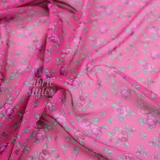 Red Small Floral Powermesh Lightweight Power Mesh Fabric