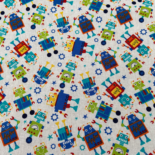 Robot Dreams Cotton Fabric White | Lightweight Cotton Fabric
