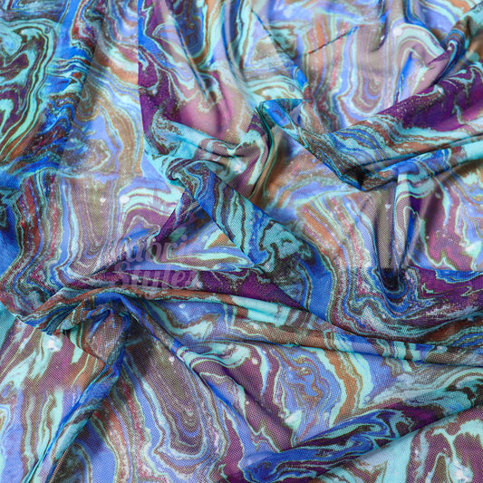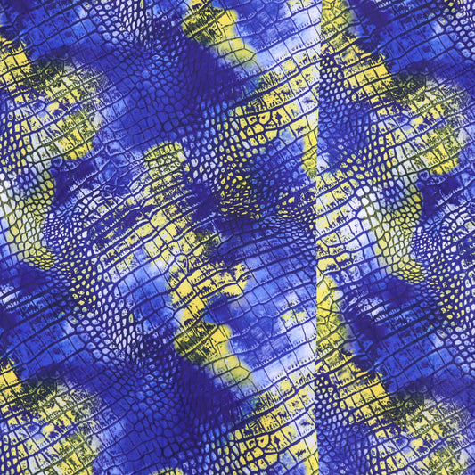 Blue Yellow Snake Skin Bubble Crepe Fabric