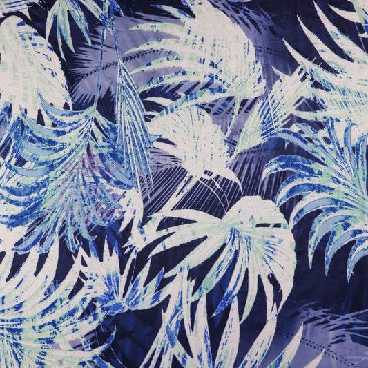 FS033 Blue Tropical Floral Print Spun Polyester Stretch Fabric