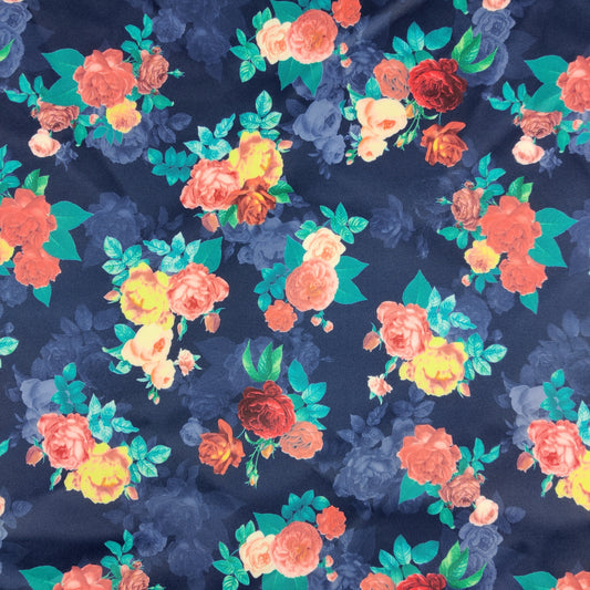 FS099_2 Roses Stretch Knit Fabric Navy