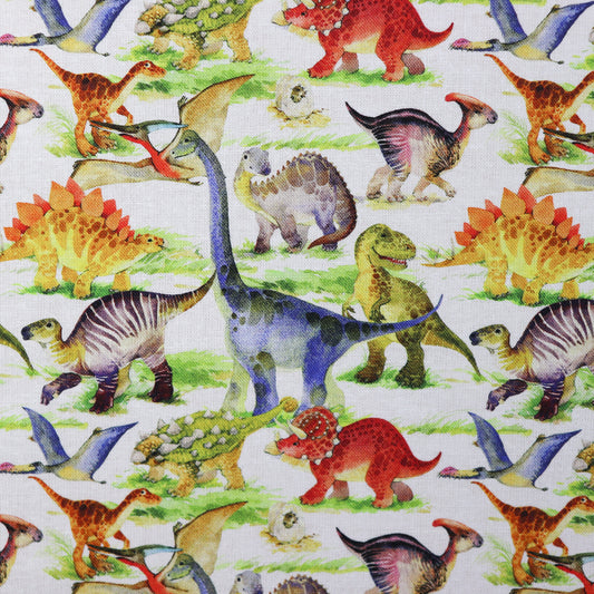 FS1027 Dinosaur Land Cotton Fabric White