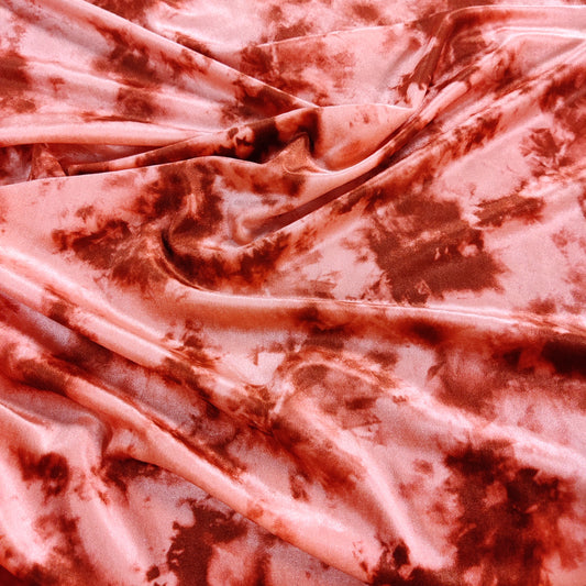 FS1043 Orange Tie Dye Velvet Stretch Knit Fabric Orange