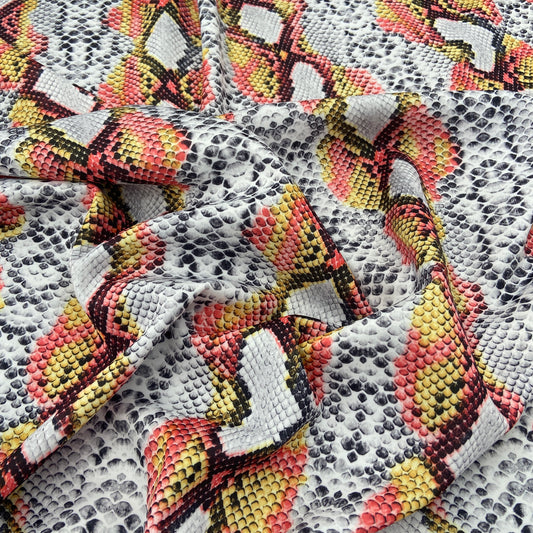 Snake Skin Scuba Stretch Knit Fabric Red Yellow White