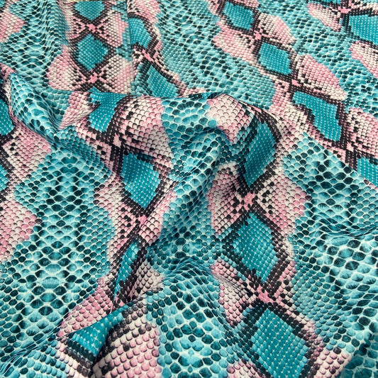 FS062_5 Snake Skin Scuba Stretch Knit Fabric Pink Turquoise
