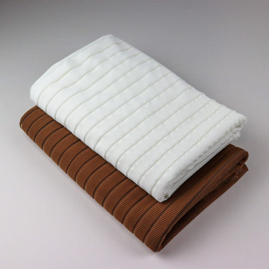FS1199 Plain Burnout 2 x 1 Rib Stretch Fabric Ivory Chocolate