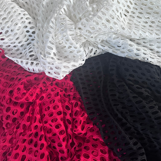 FS1197 Plain Crochet Net Fabric Stretch Black White Red