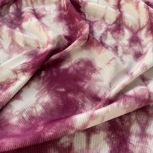 FS890 Tie Dye Rib Stretch Knit Fabric Purple