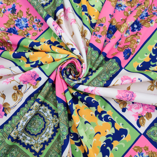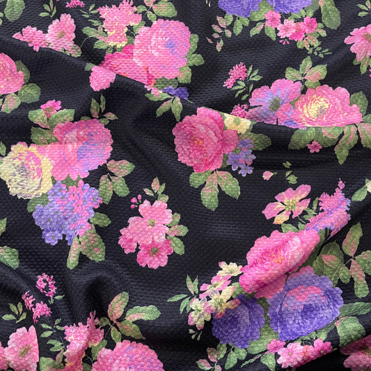 FS973 Pink Purple Rose Floral Square Jacquard Knit Fabric