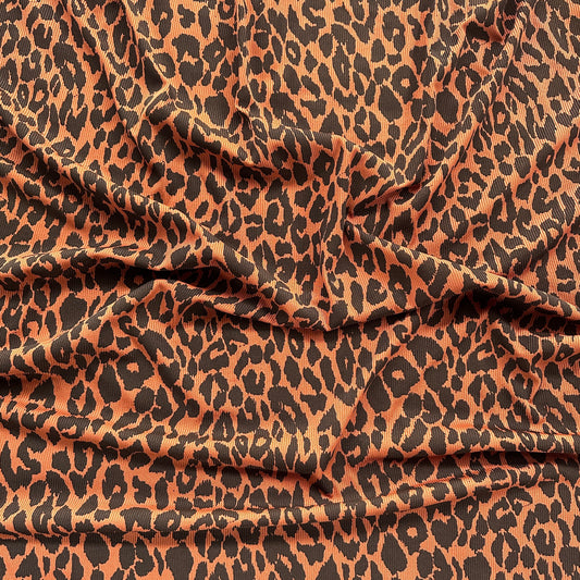 Leopard Animal Print 2 x 1 Rib Stretch Fabric Rib