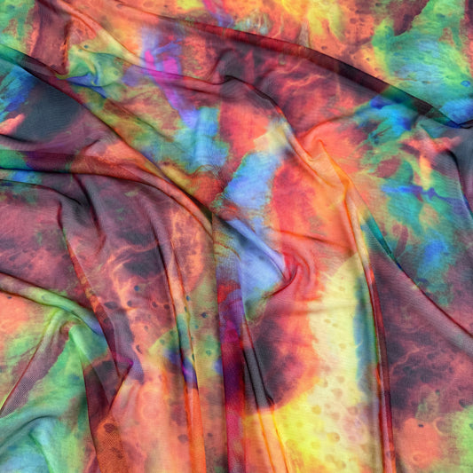FS1247 Enchanted Rainbow Tie Dye Print Jersey Stretch Power Mesh Fabric