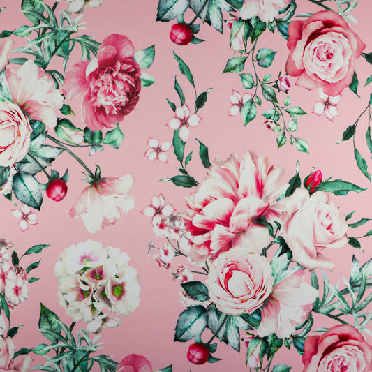 FS1033 Pink Rose Floral Scuba Stretch Knit Fabric Pink