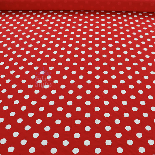 13mm Red Polka Dot Black Viscose Elastane Fabric