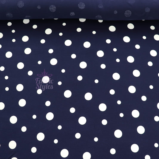 19mm 10mm Mixed Polka Dot Navy Viscose Elastane Fabric