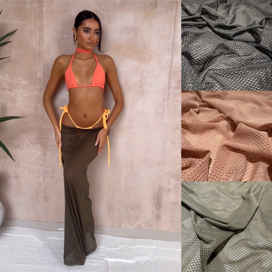 Plain Fishnet Mesh Fabric Stretch Black Salmon Olive