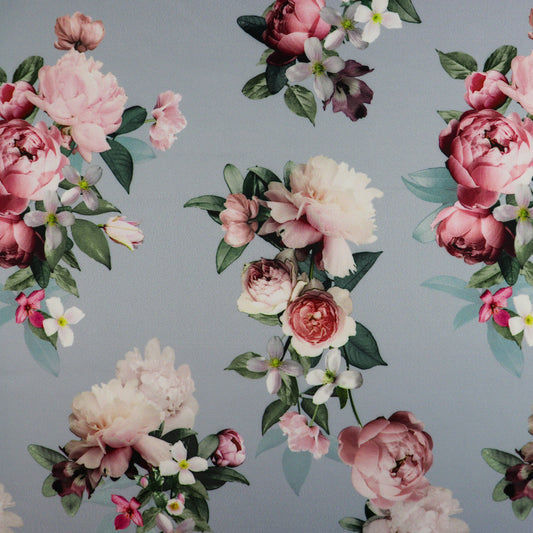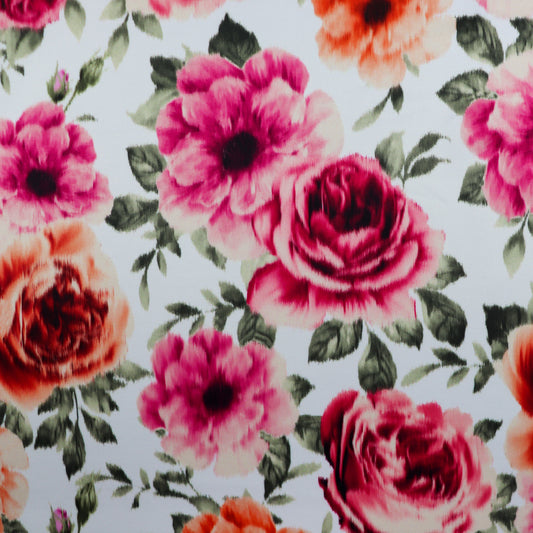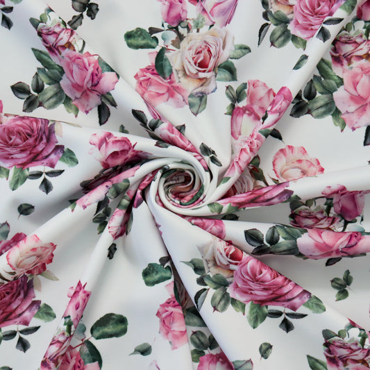 FS1174 Pink Rose Floral Print Scuba Stretch Knit Fabric