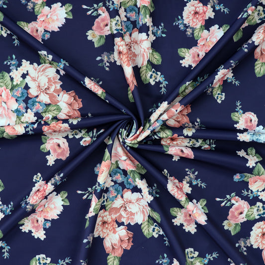 Royal Bloom Floral Scuba Stretch Fabric Navy by the Metre