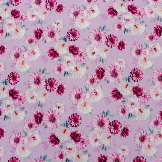 FS1182 Floral Garden Print Scuba Stretch Knit Fabric Lilac