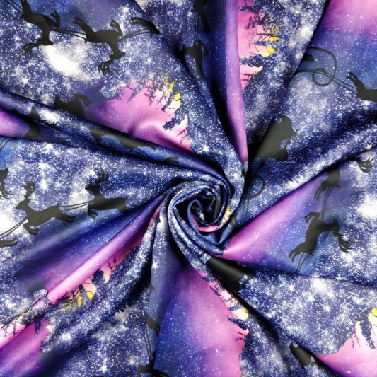 FS342 Galaxy Reindeer Scuba Stretch Knit Fabric Purple Black