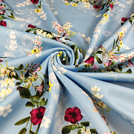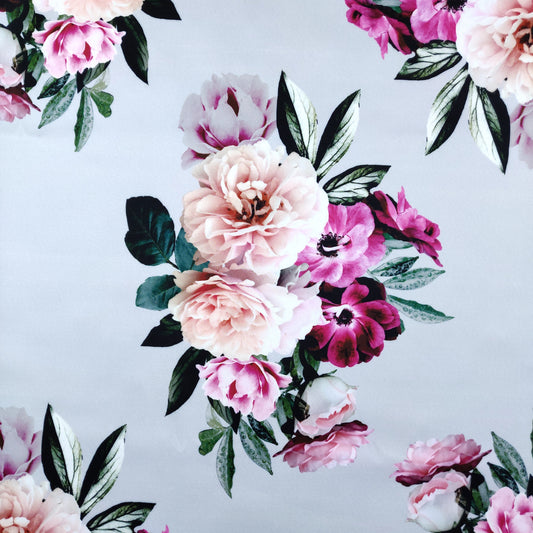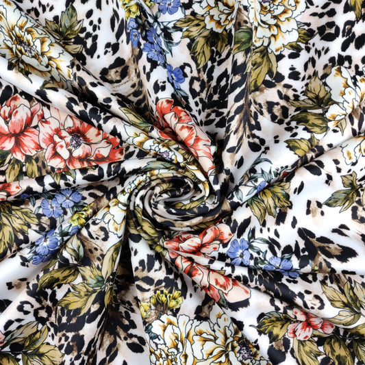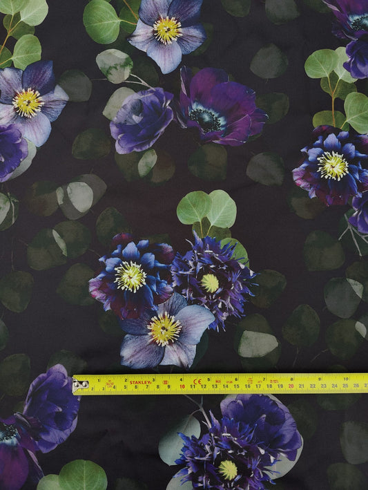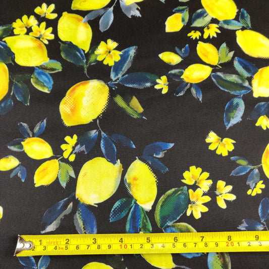 FS295 Lemon Floral Scuba Stretch Knit Fabric White & Black