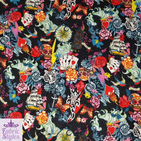 Tie Dye Marble Lightweight Scuba Stretch Fabric Black White