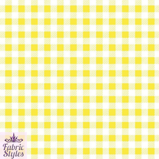 Yellow Gingham Print Scuba Stretch Fabric Yellow