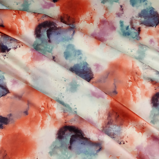 FS116_2 Powder Paint Cloud Scuba Stretch Knit Fabric Pink Orange