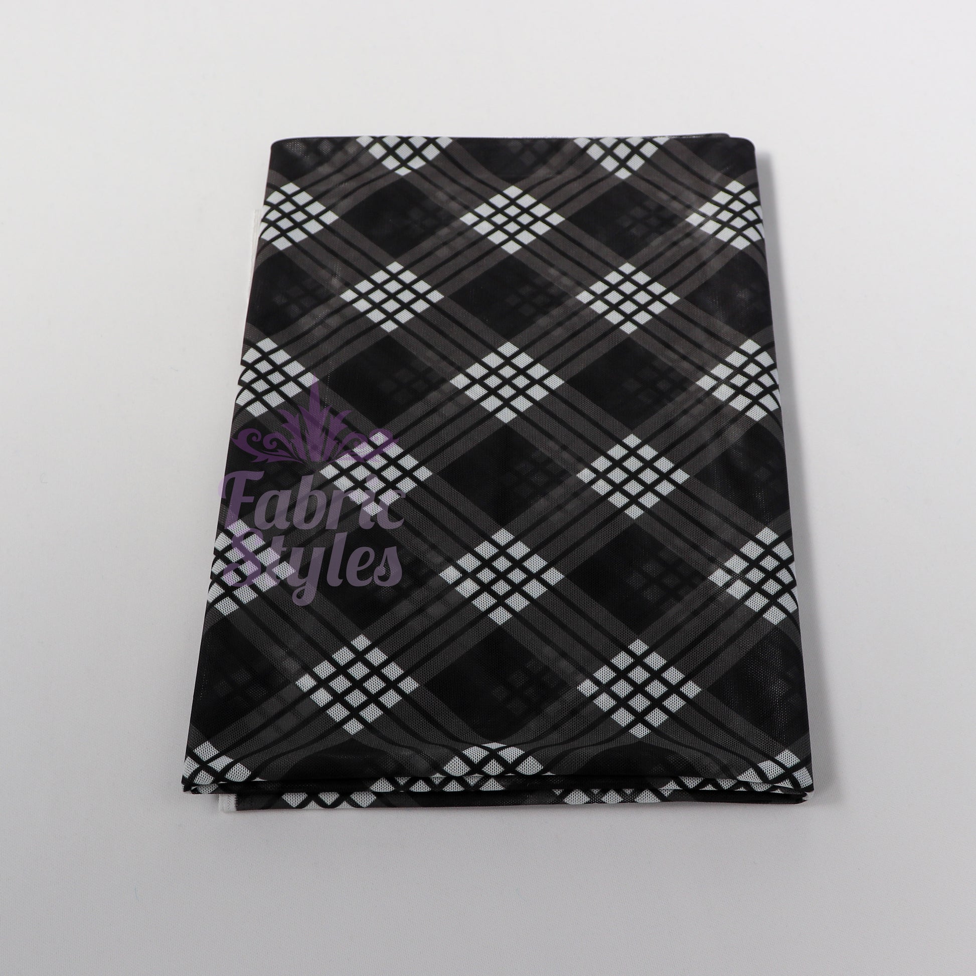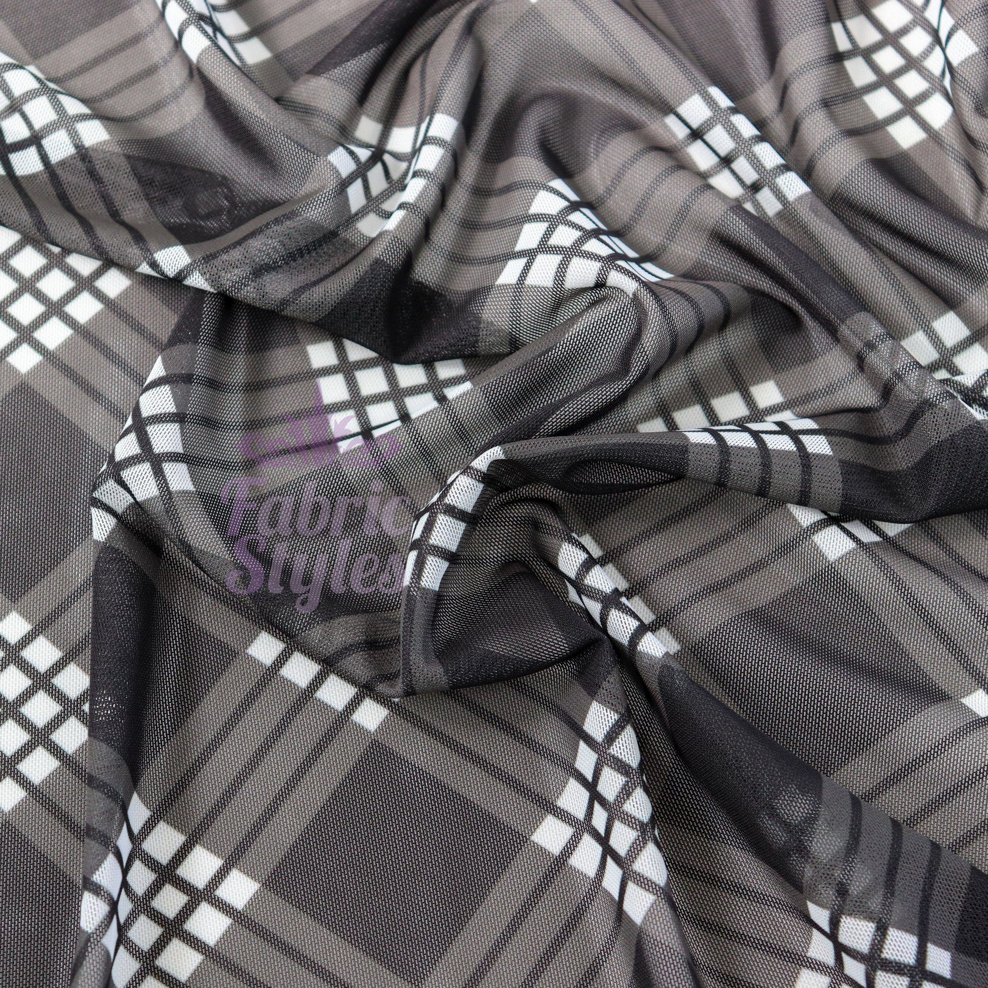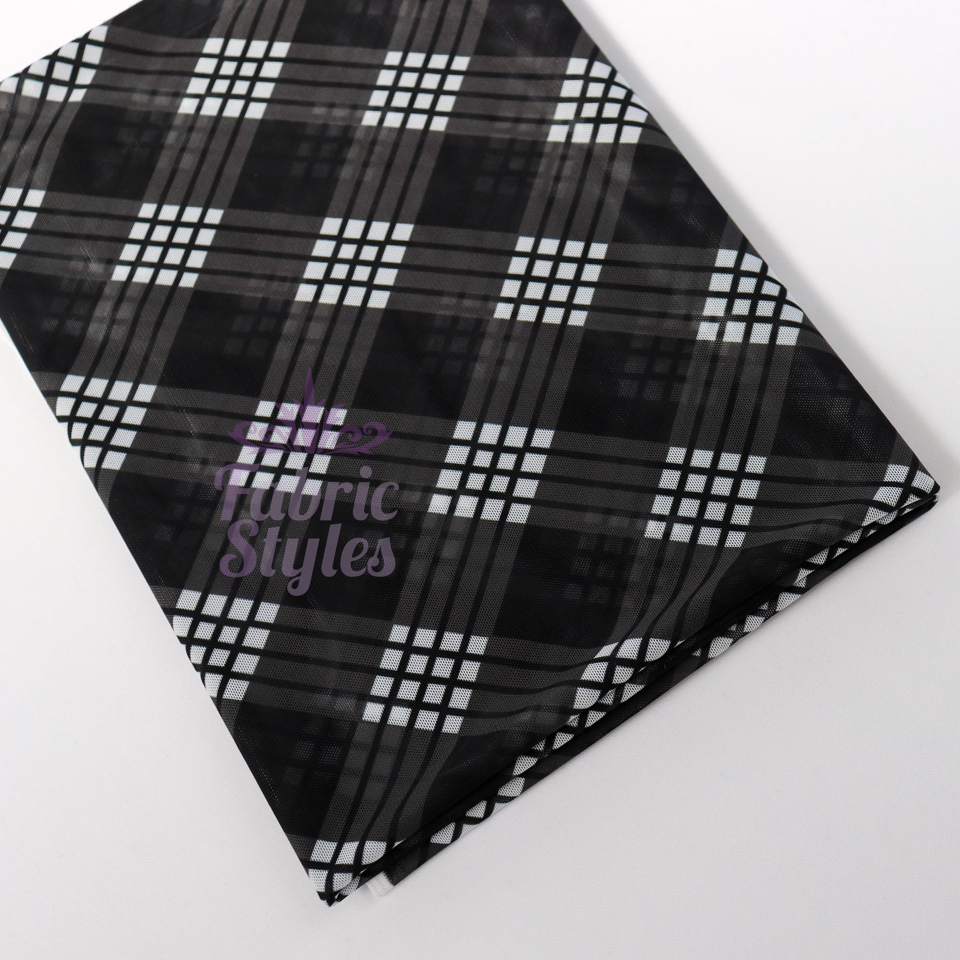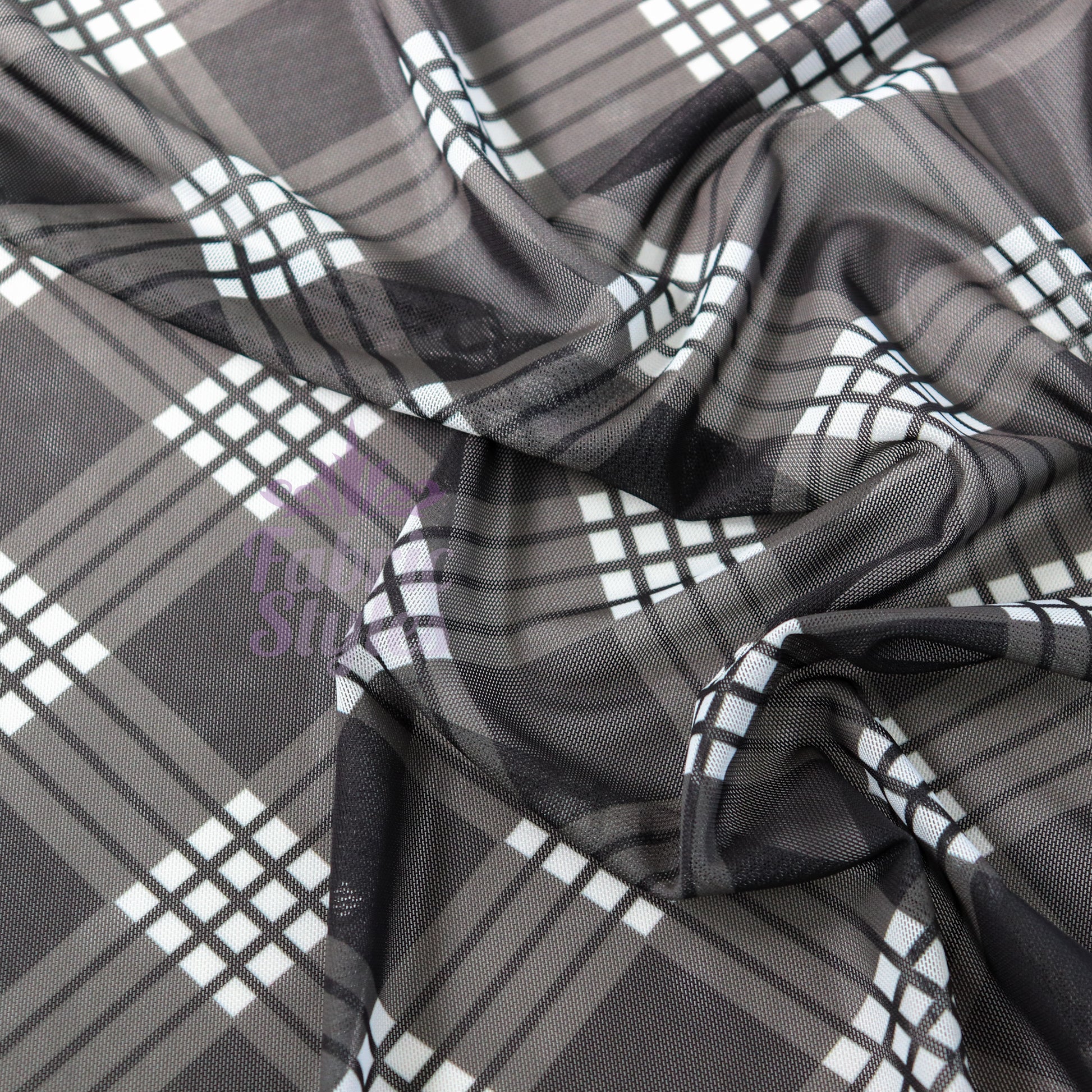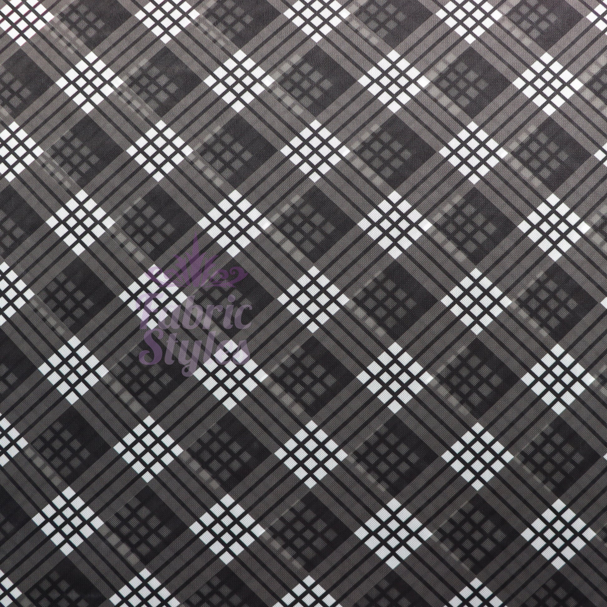Black Tartan Power Mesh Fabric