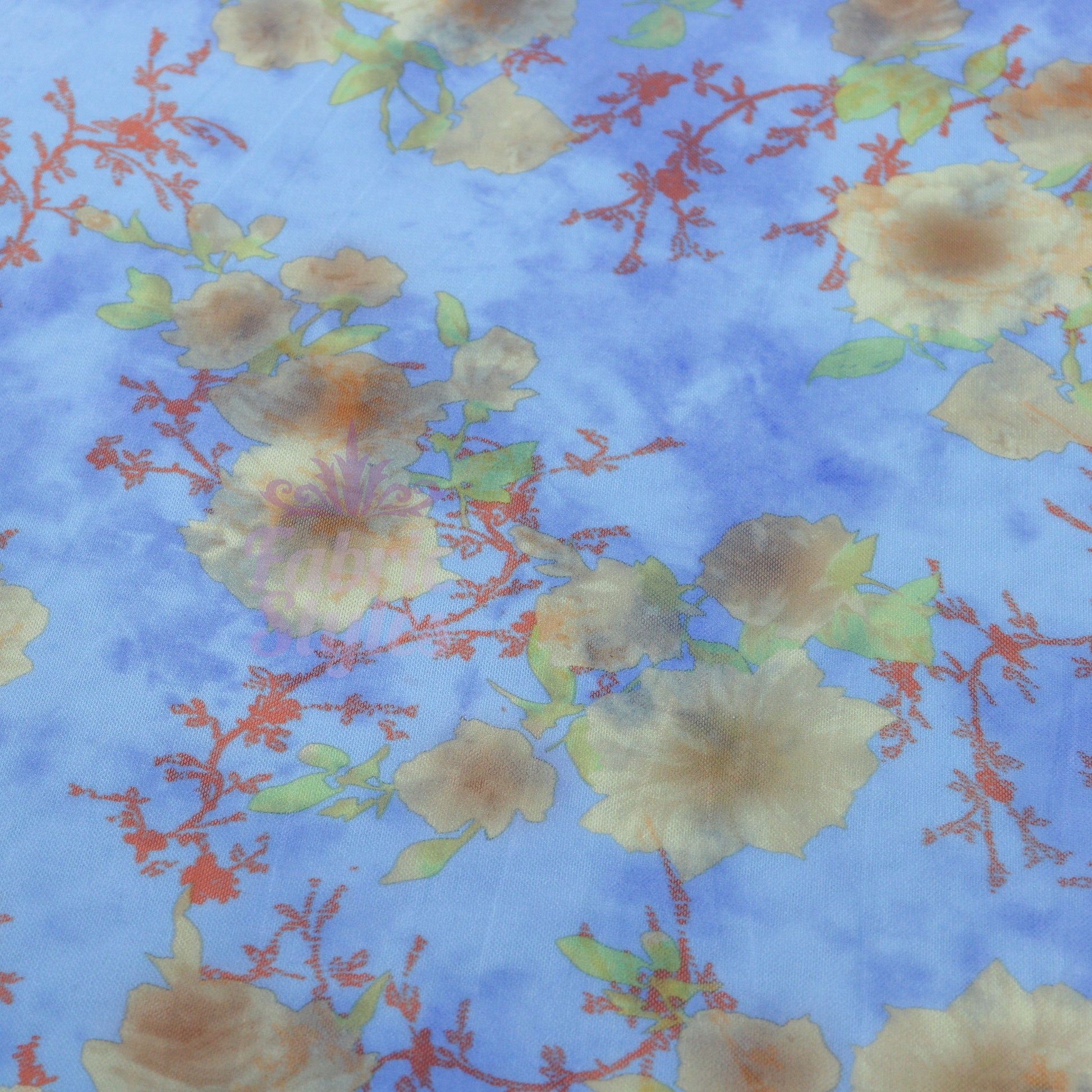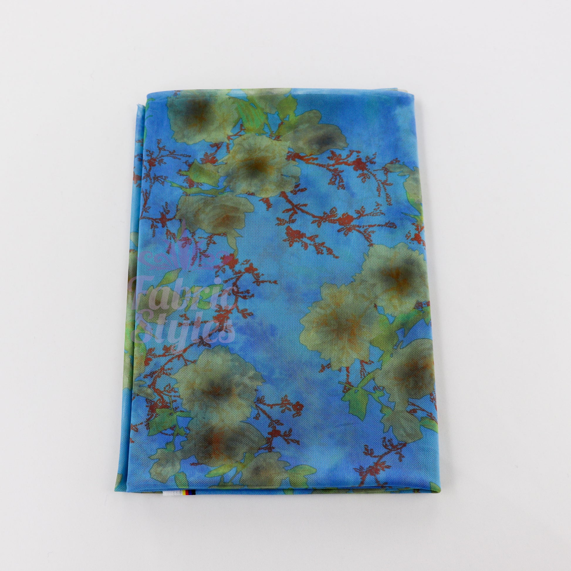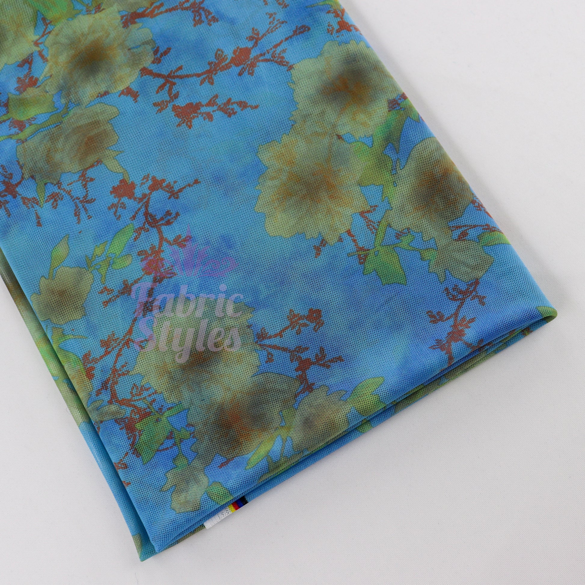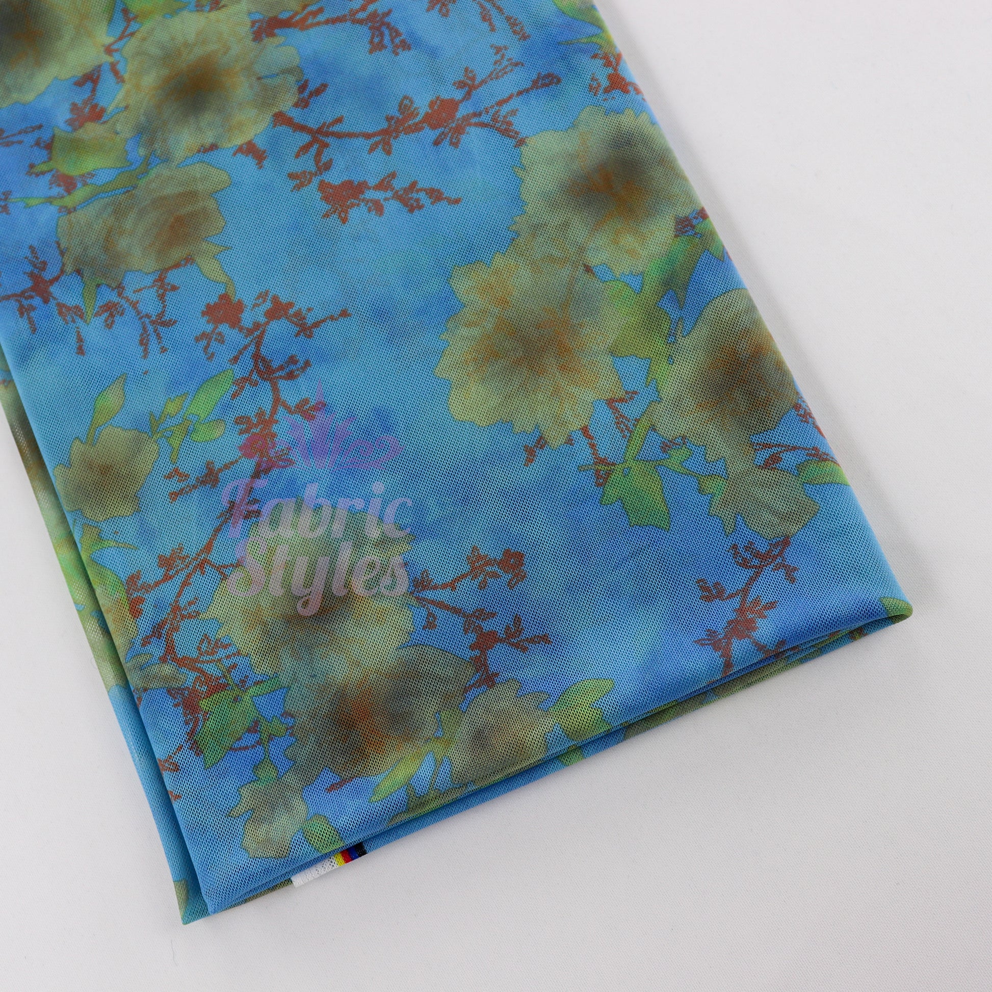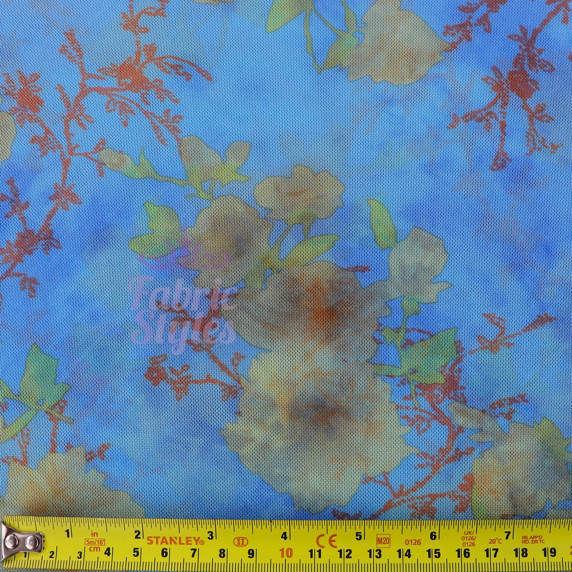 Blue Floral Power Mesh Fabric