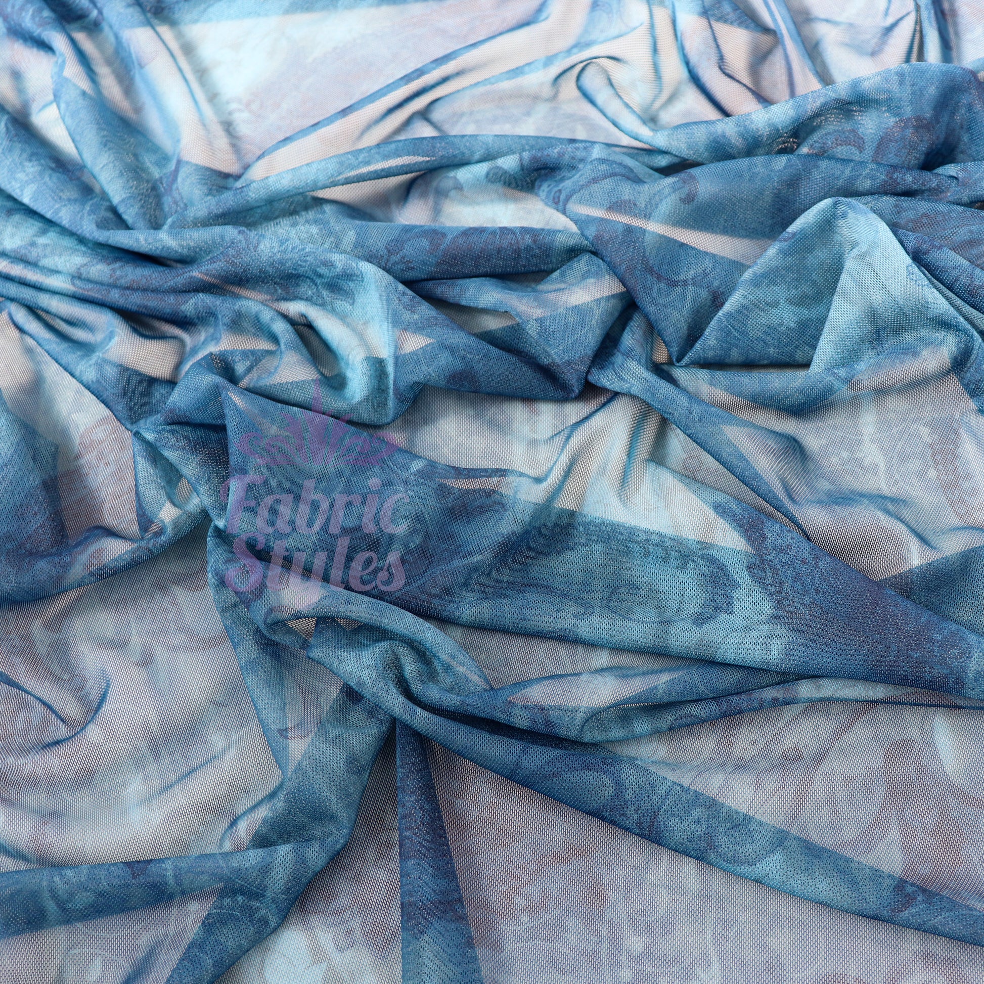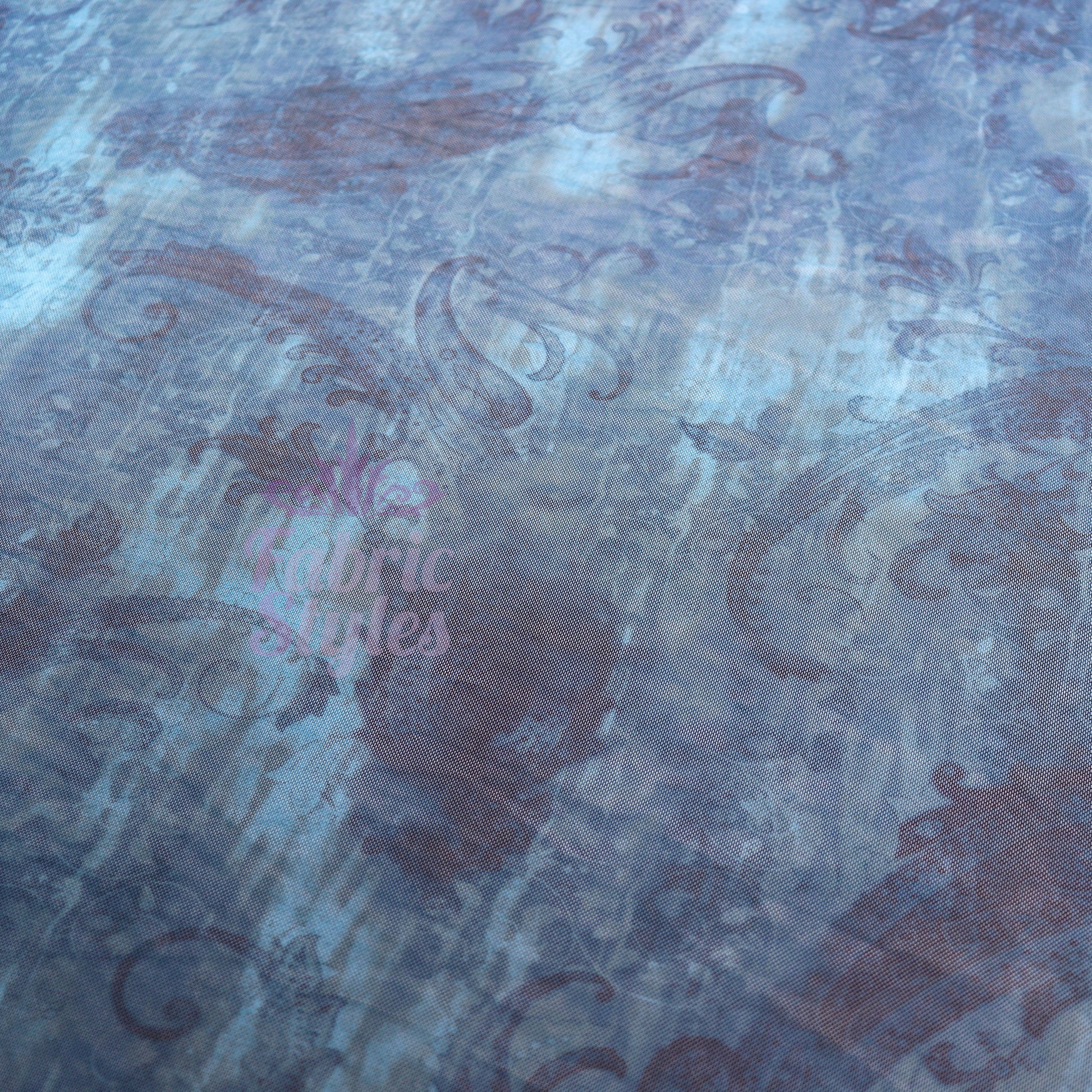 Blue Paisley Power Mesh Fabric
