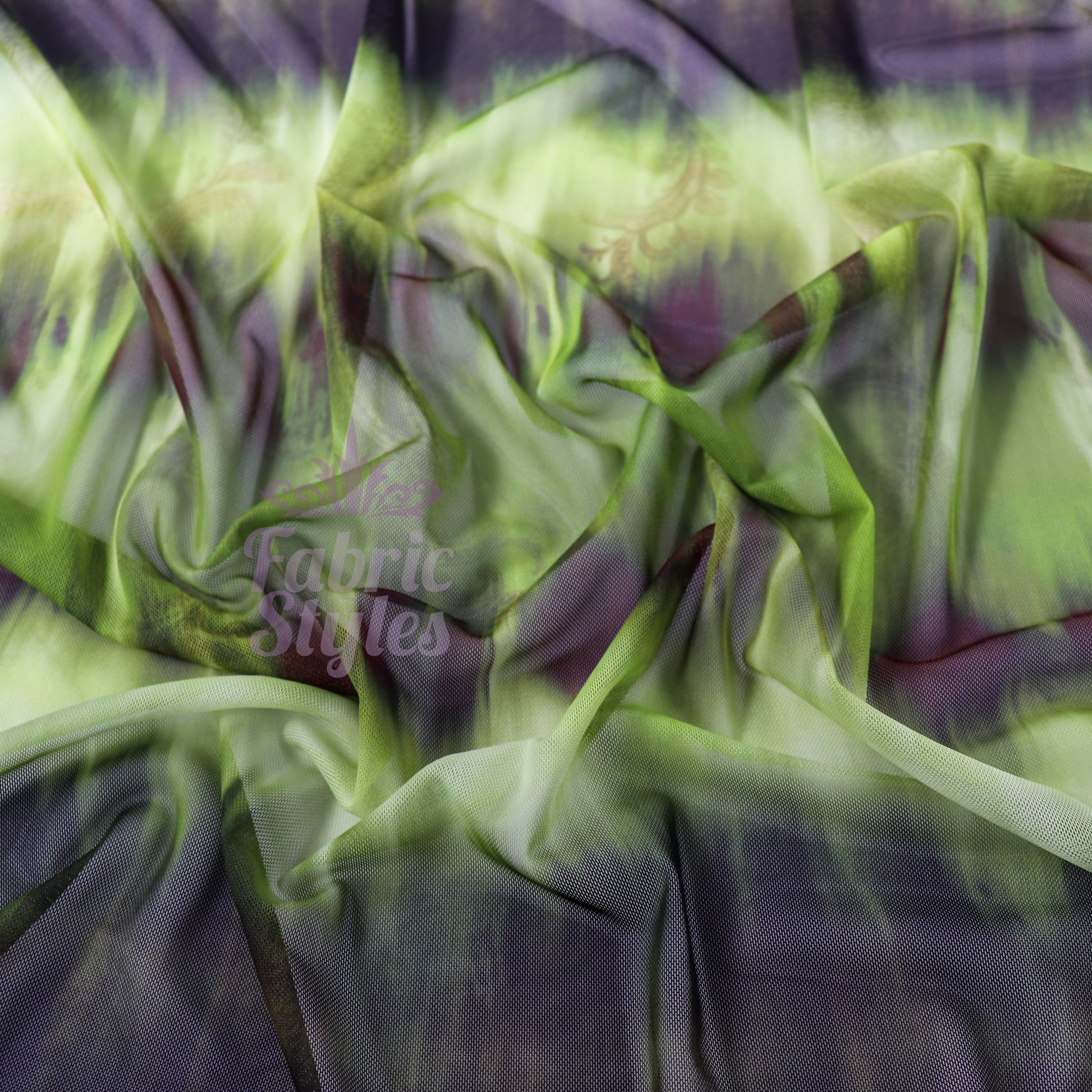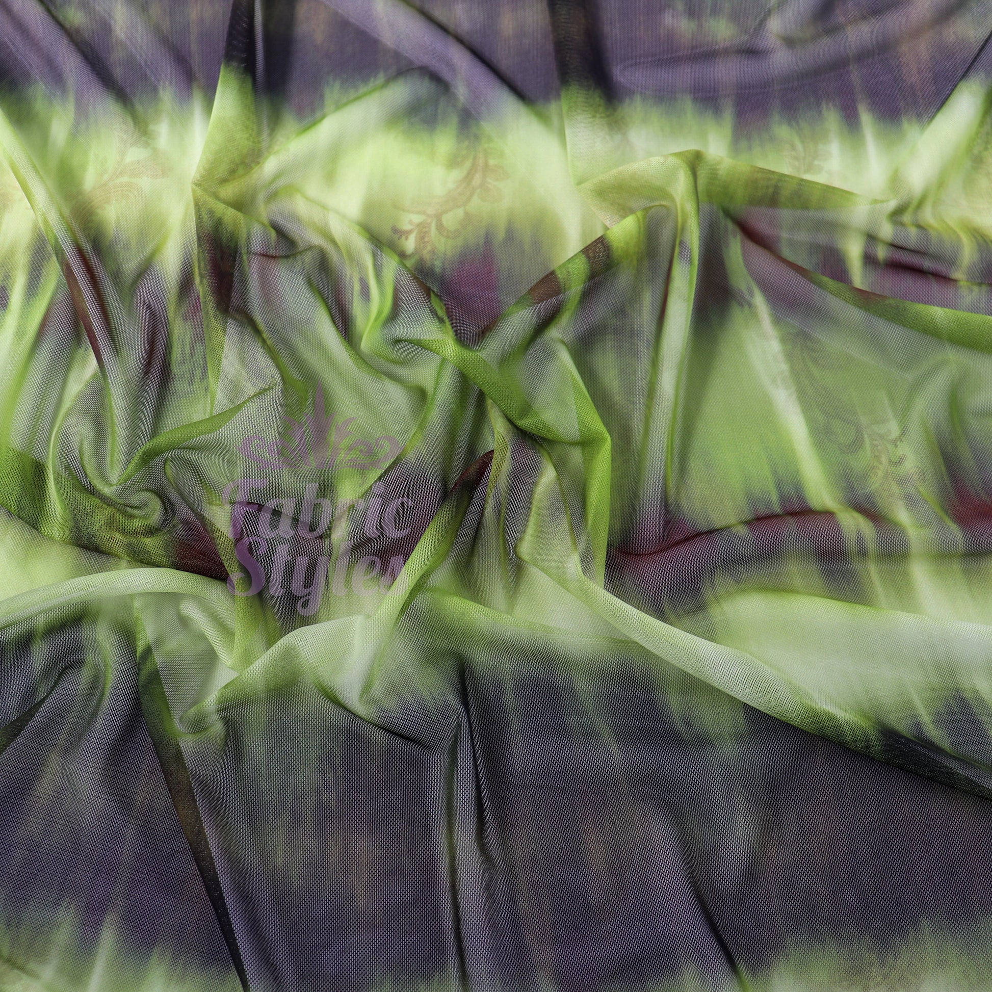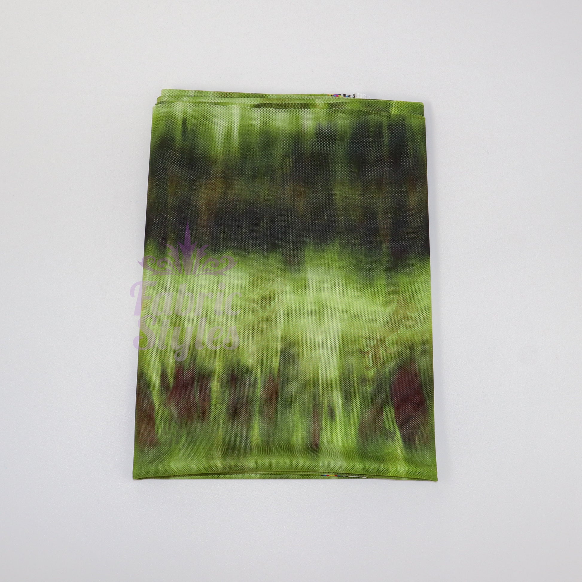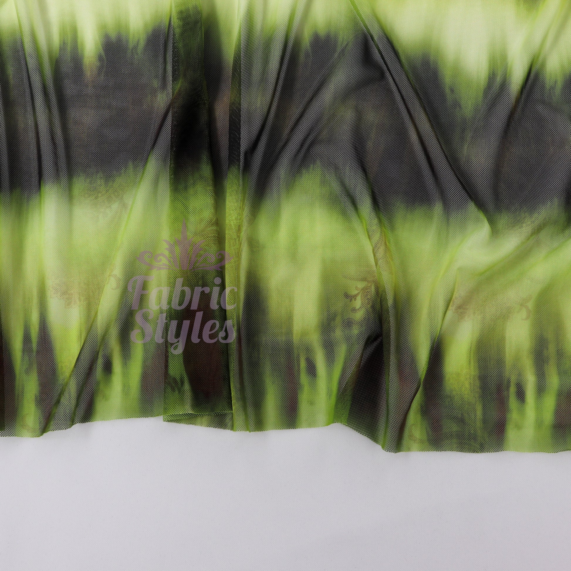 Green Black Tie Dye Paisley Power Mesh Fabric