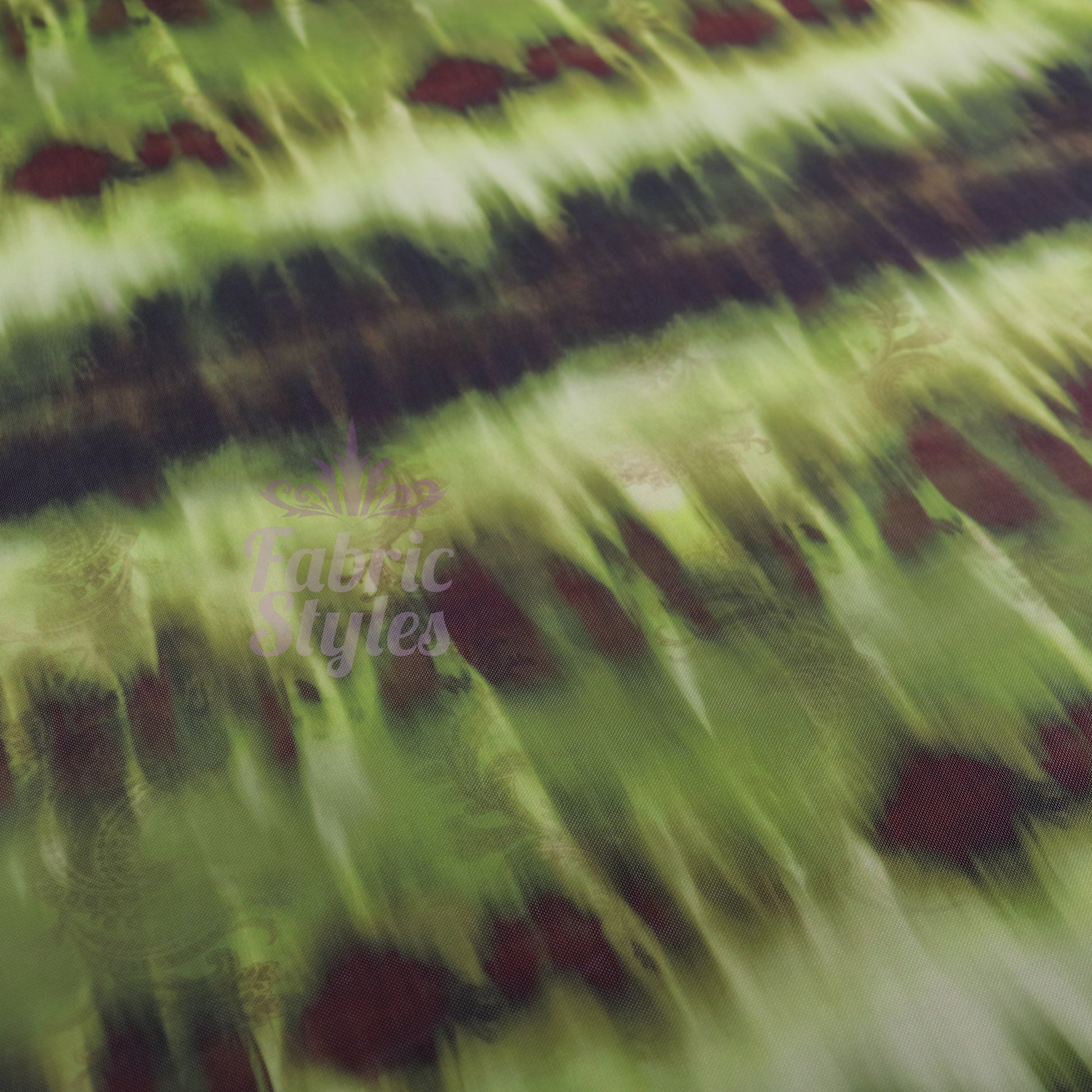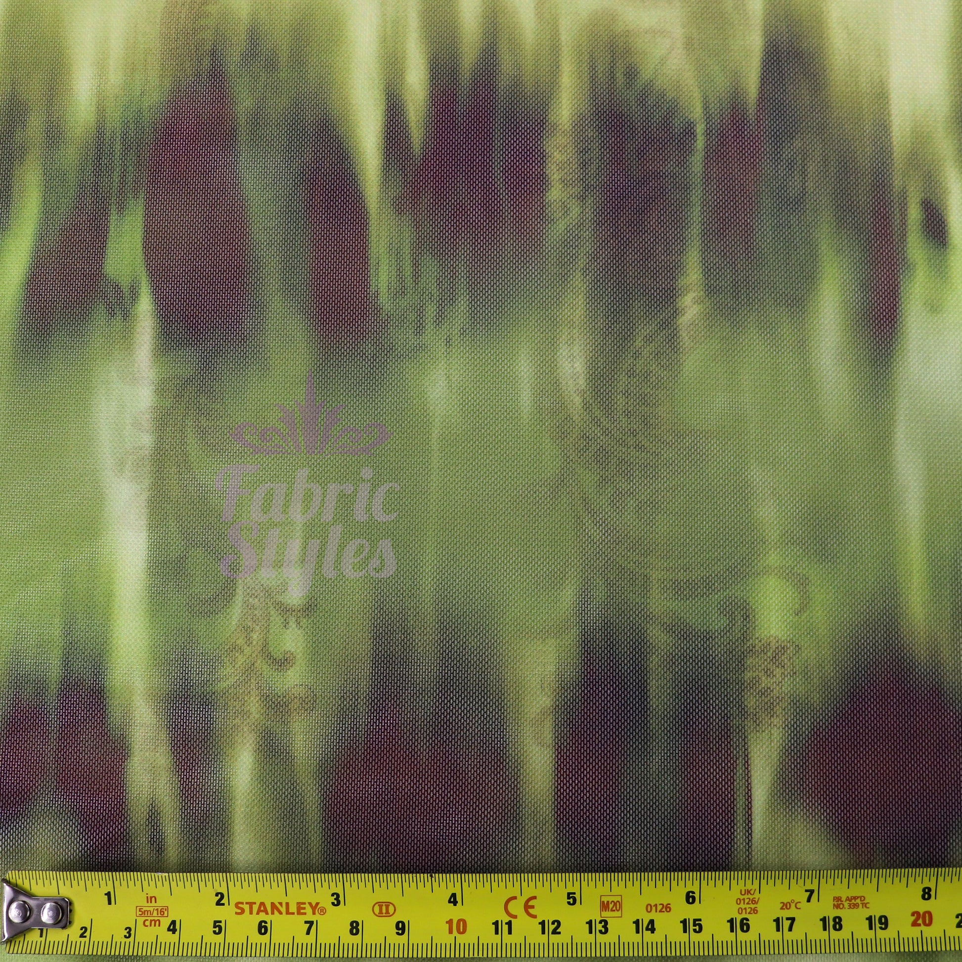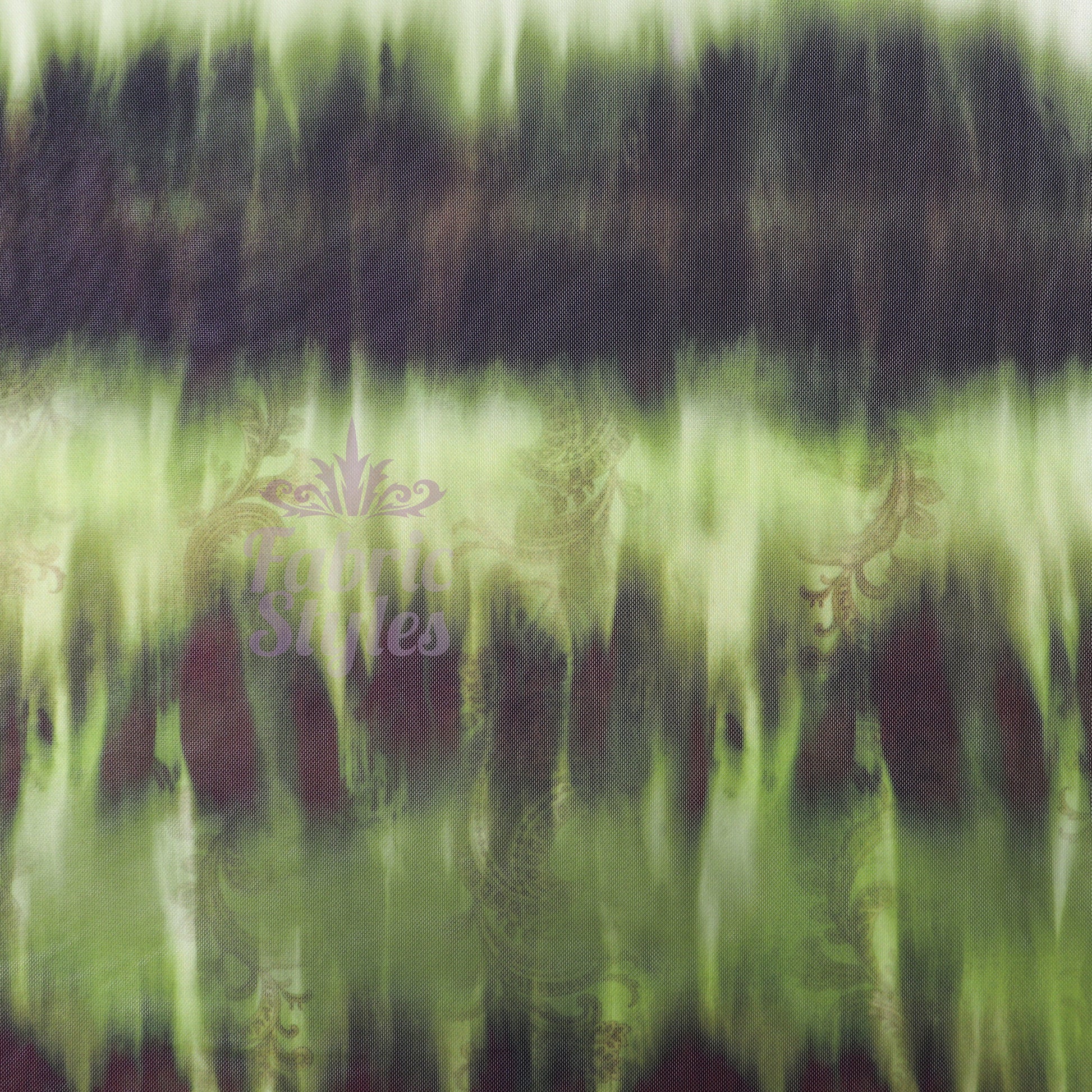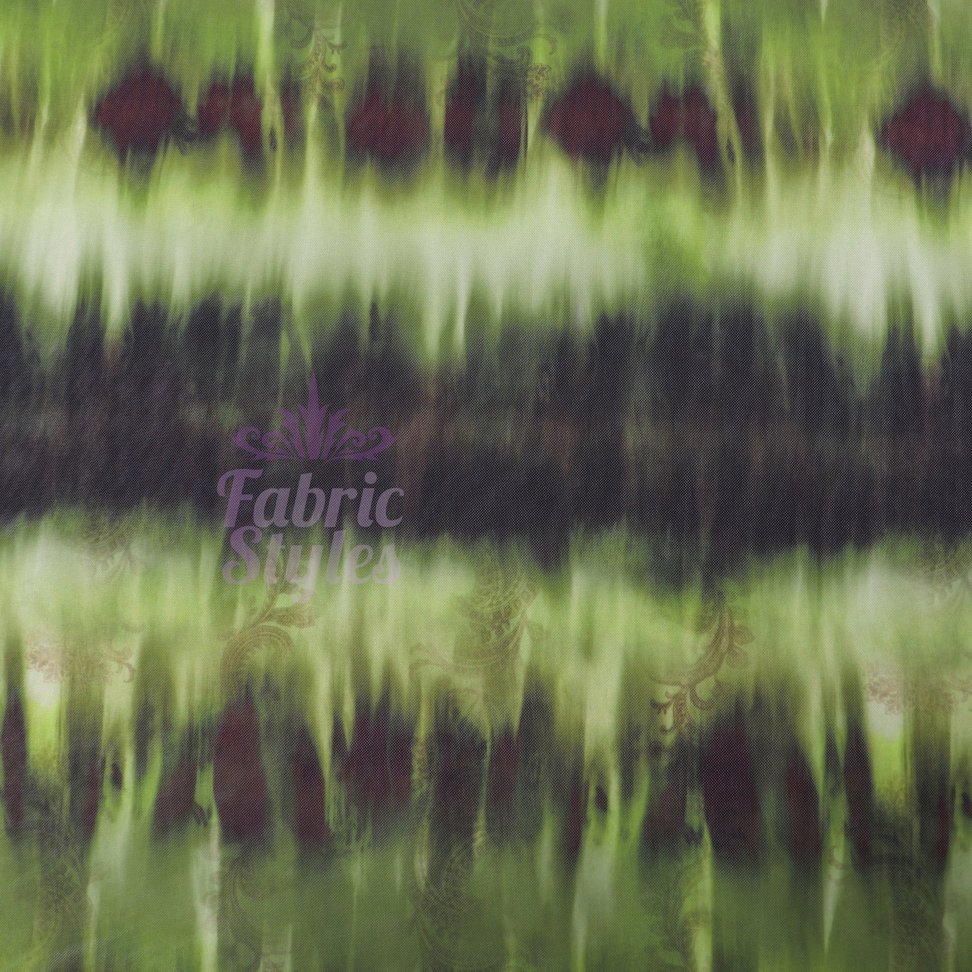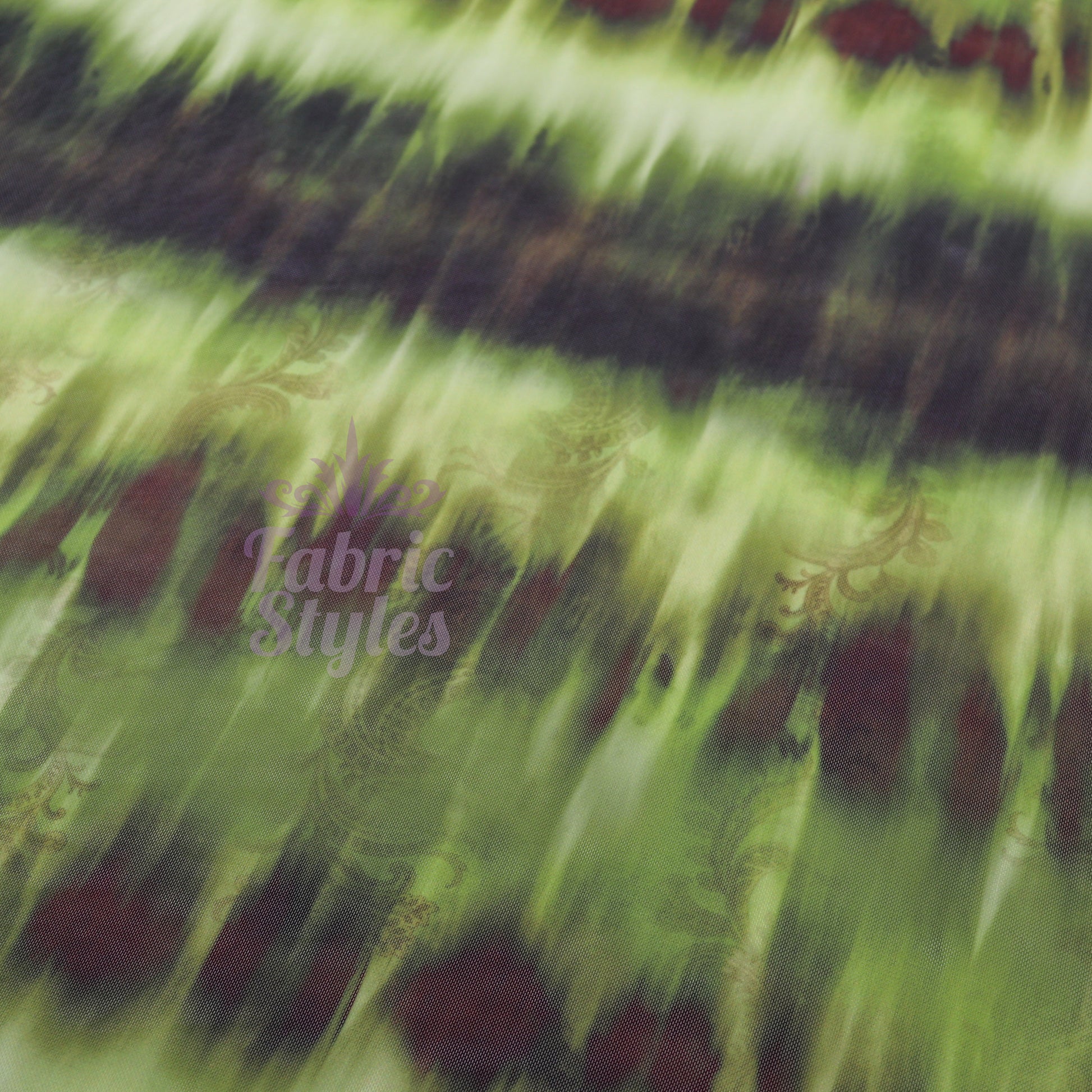 Green Black Tie Dye Paisley Power Mesh Fabric