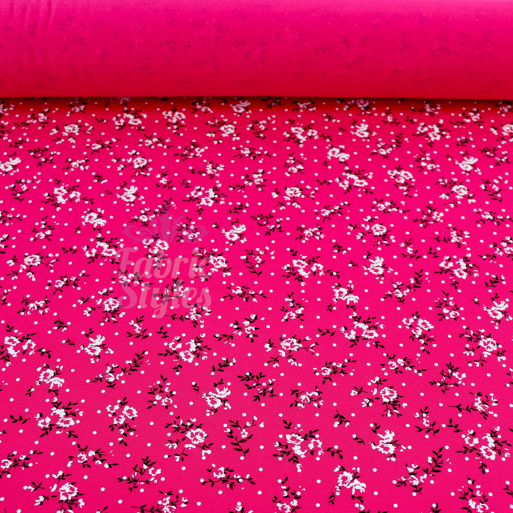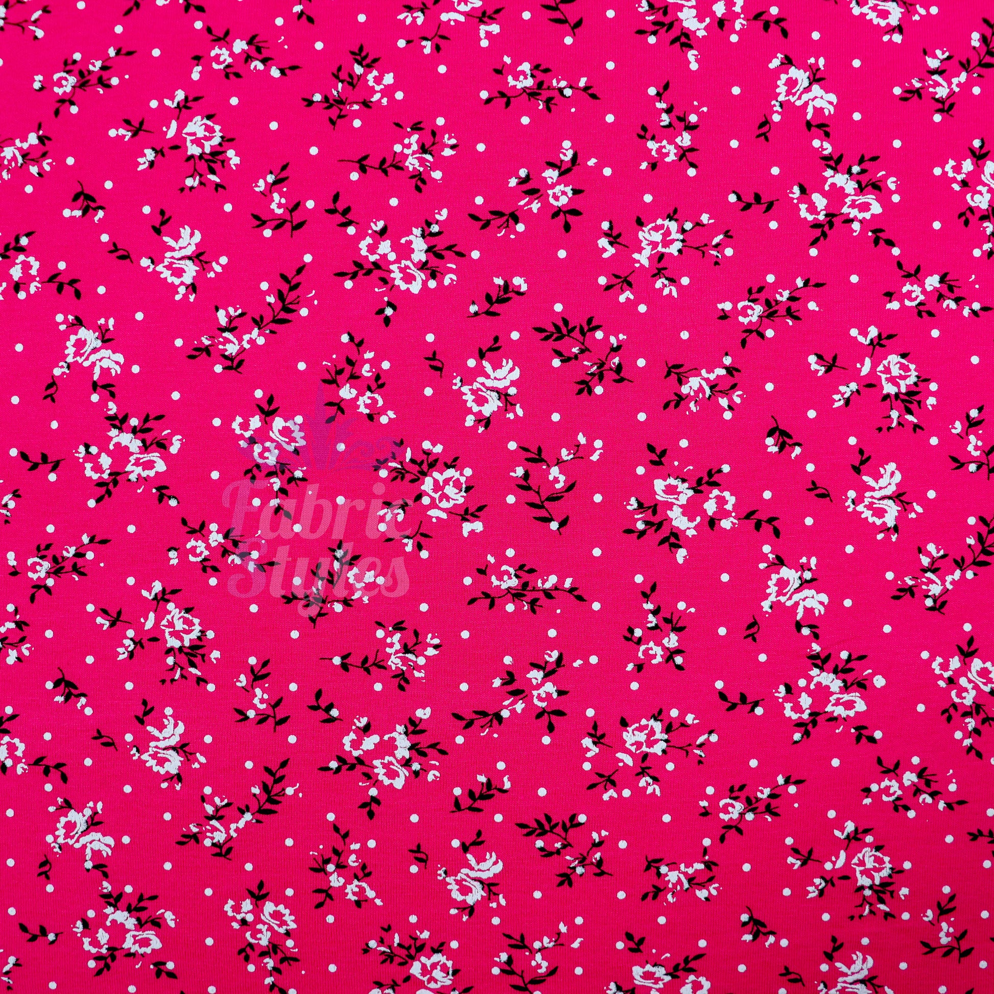 Pink Floral Black Polka Dot Viscose Elastane Fabric