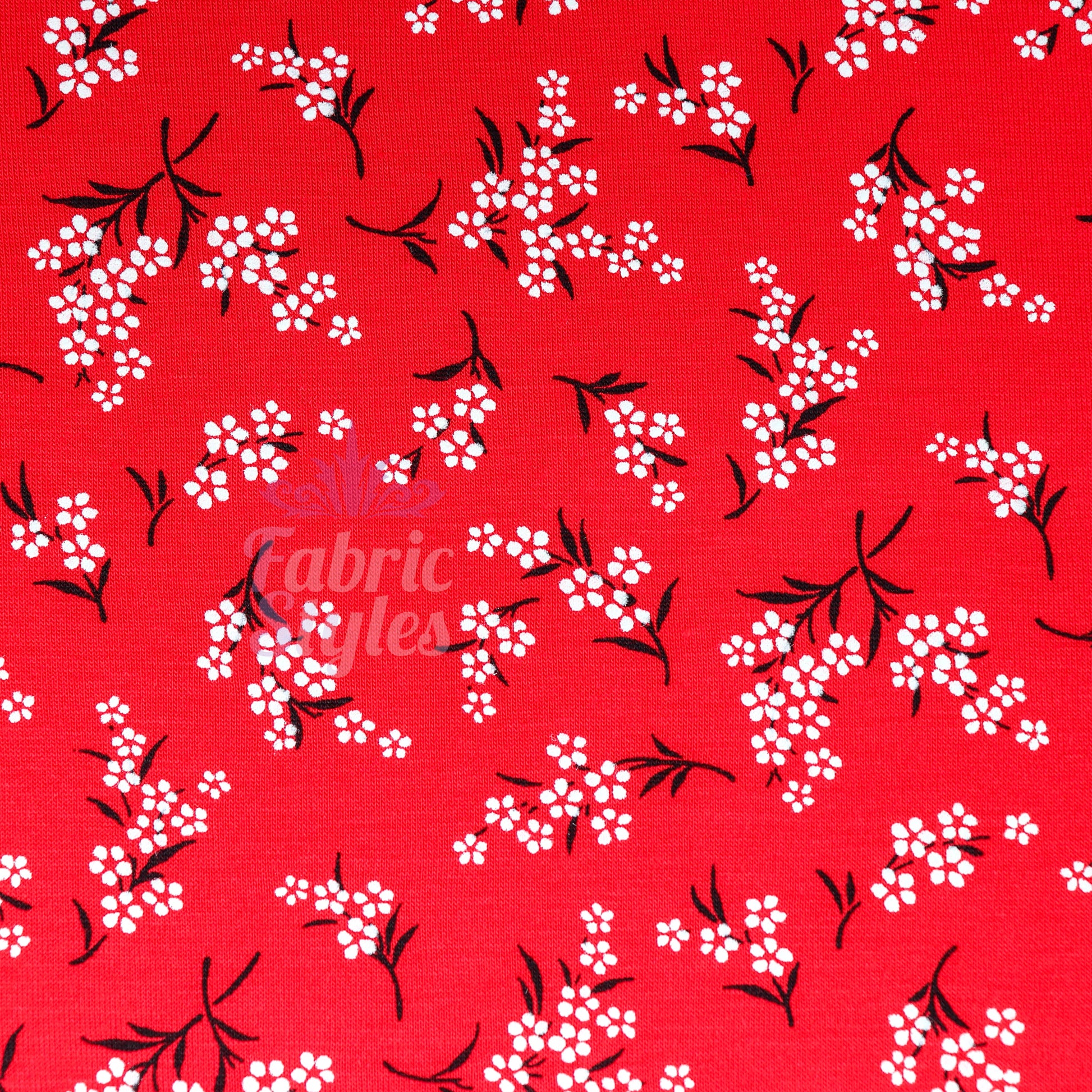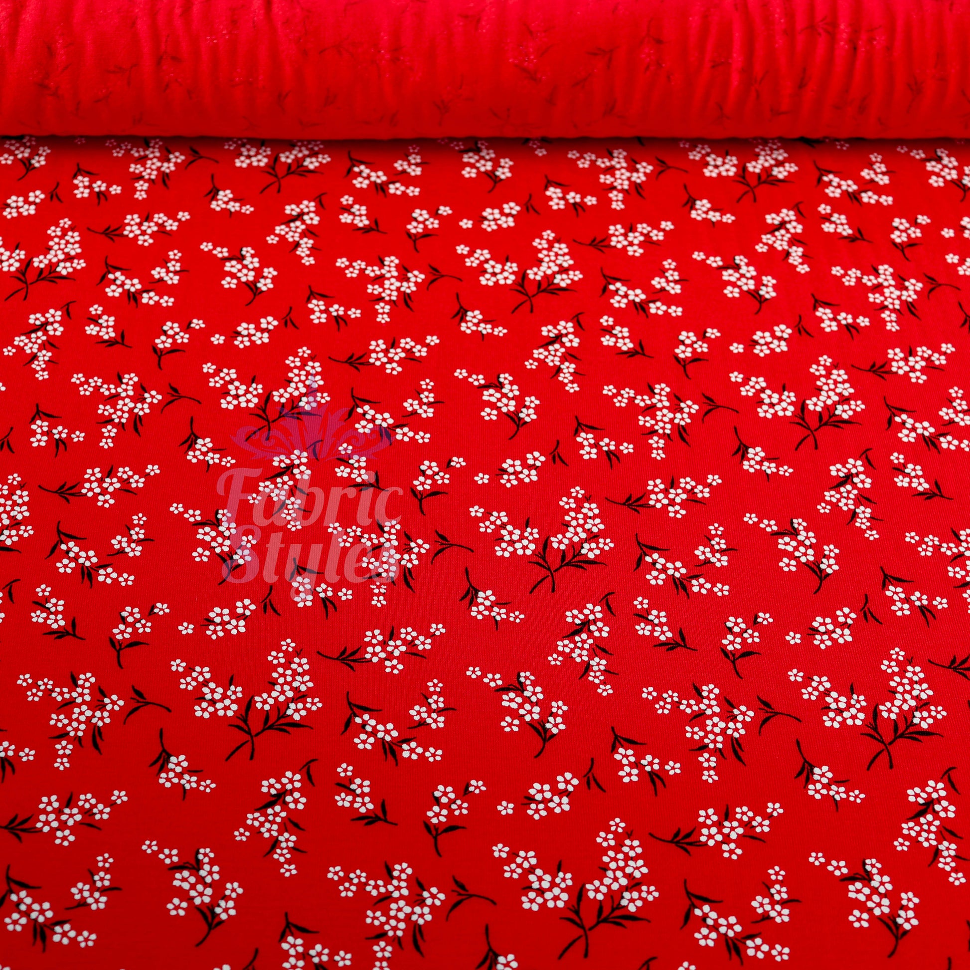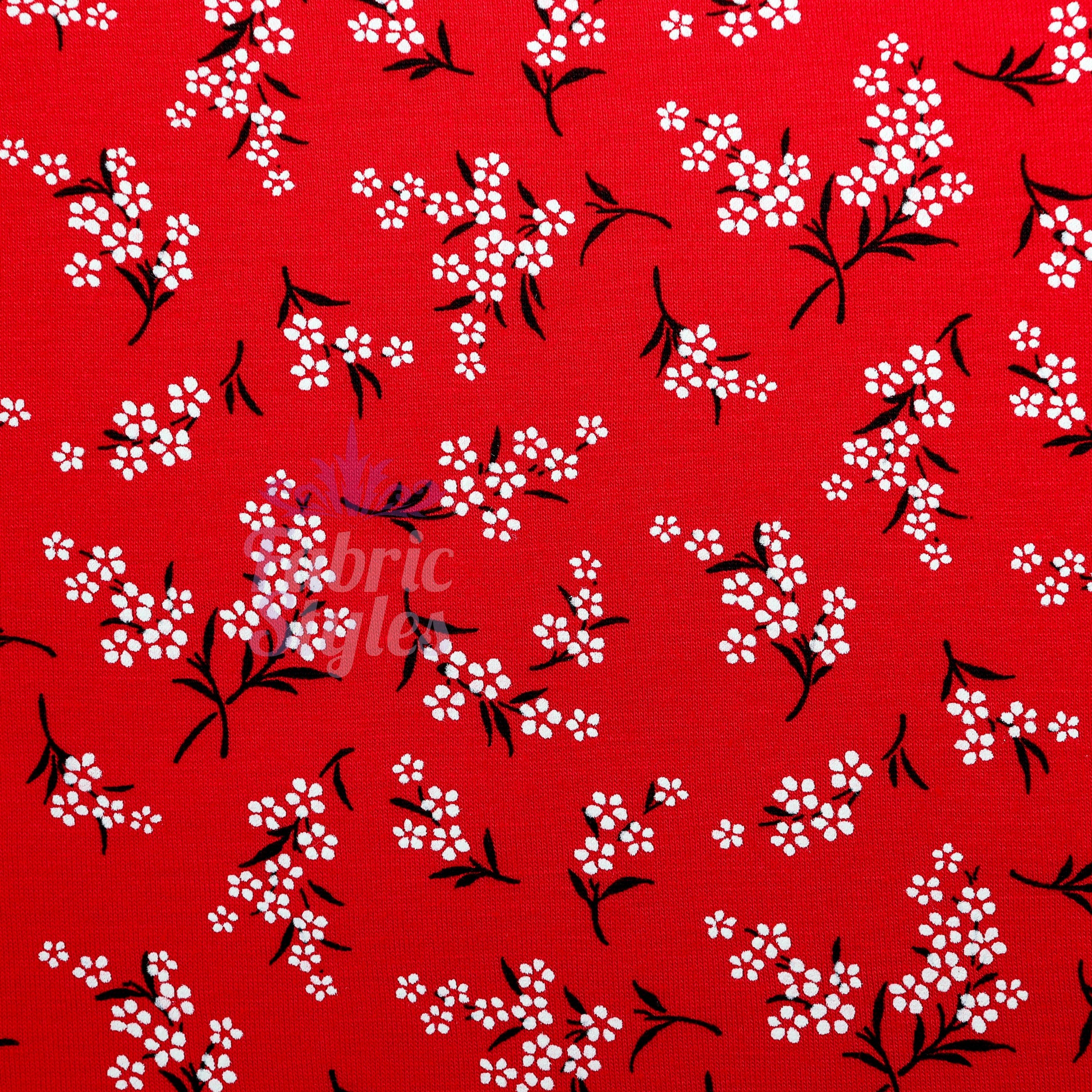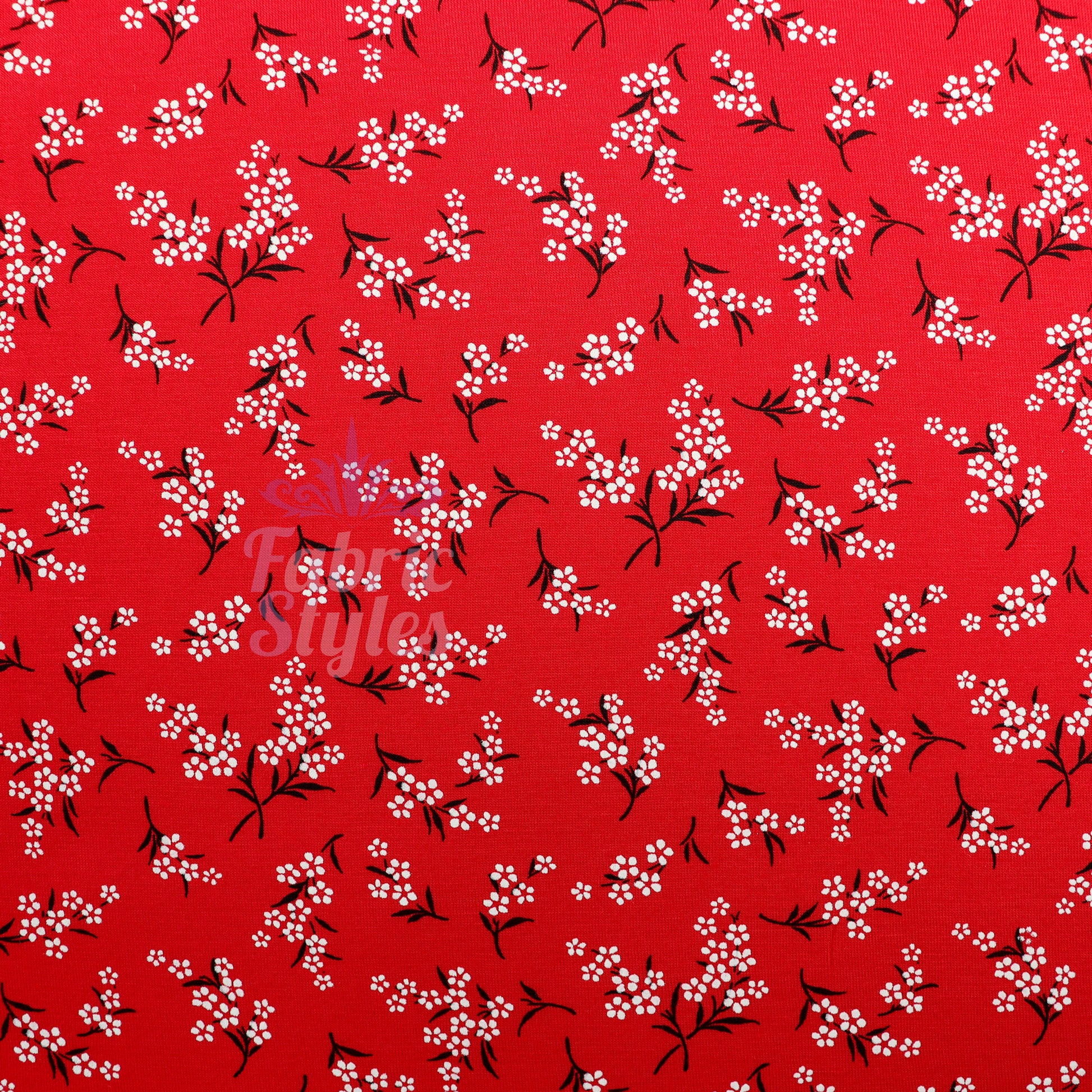 Red Bouquet Black White Floral Viscose Elastane Fabric