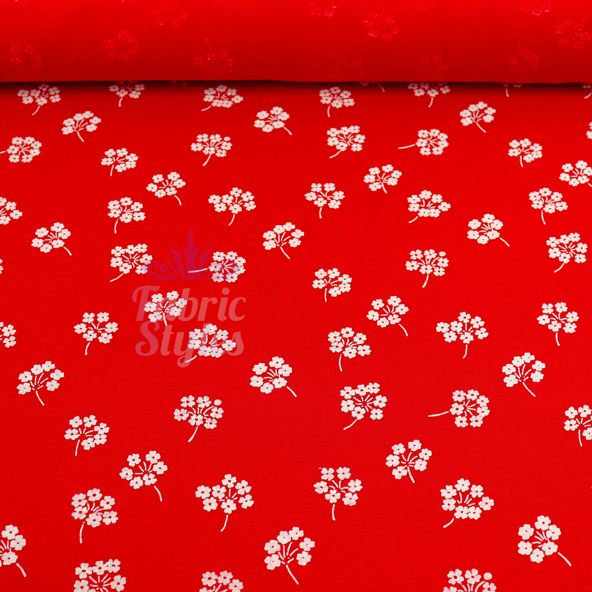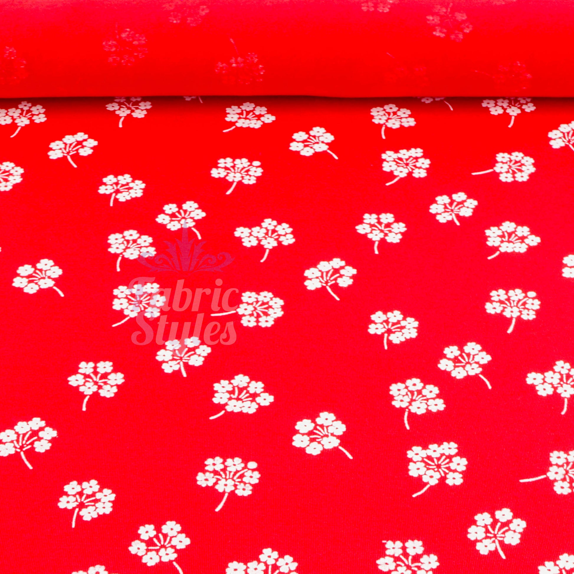 Red Floral White Bouquet Viscose Elastane Fabric