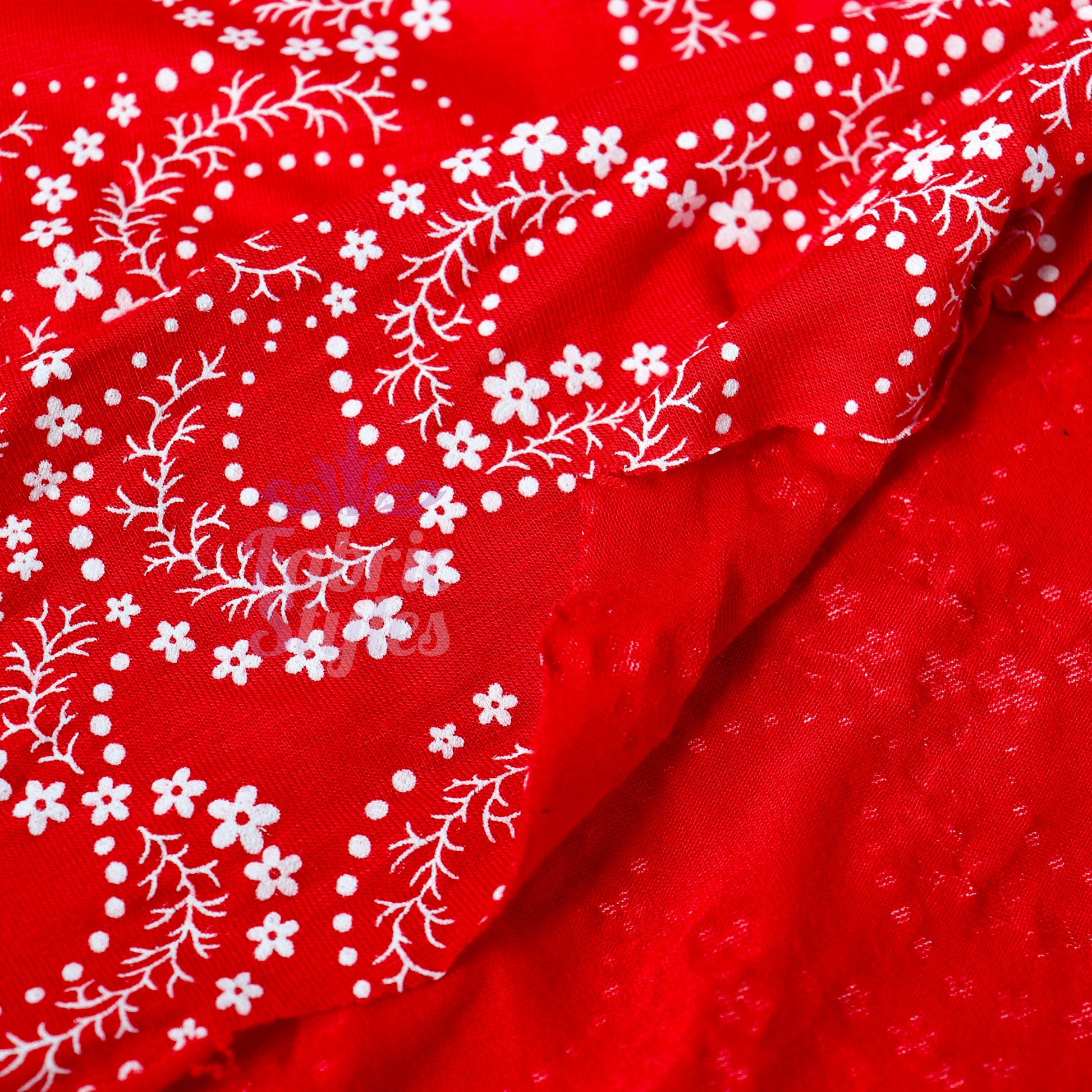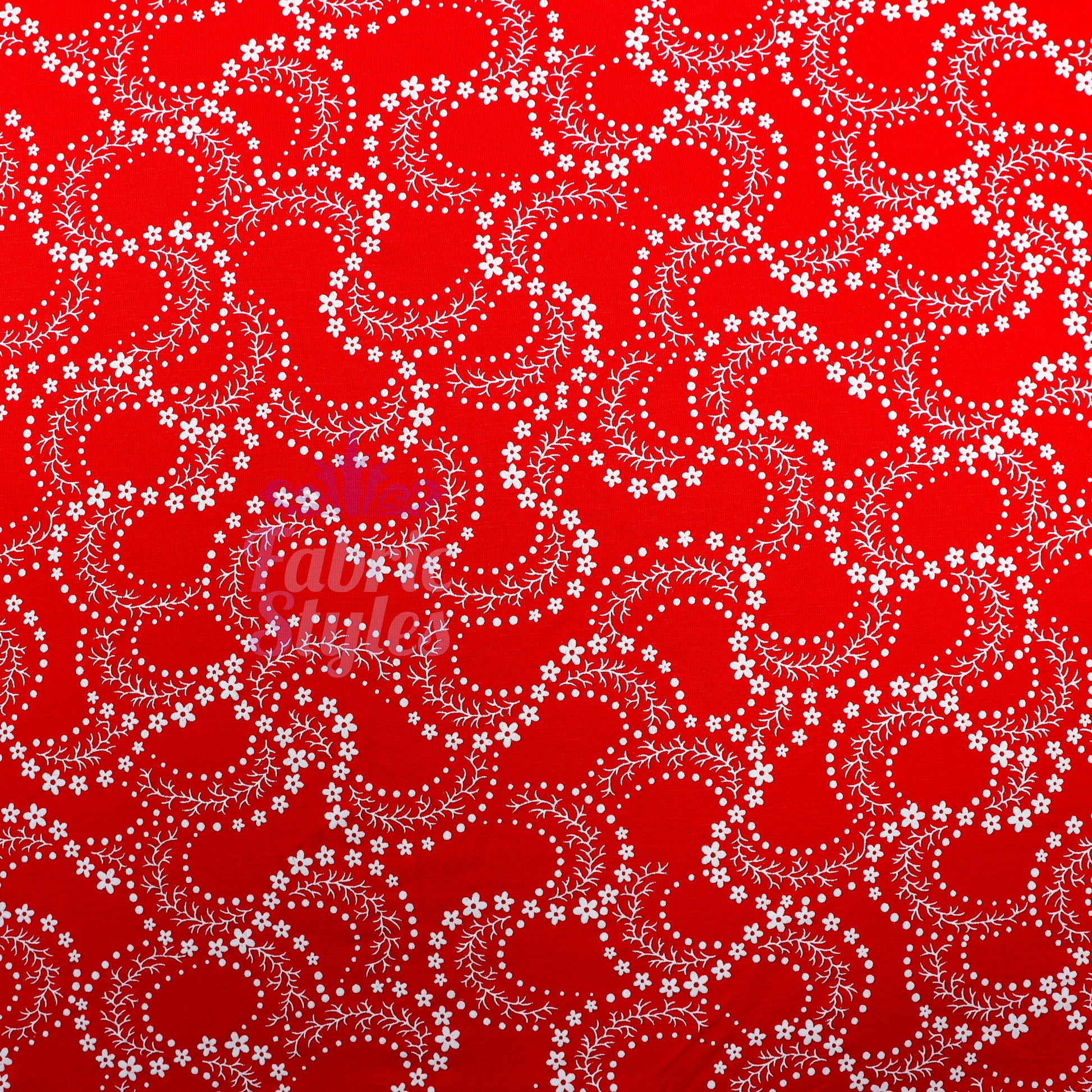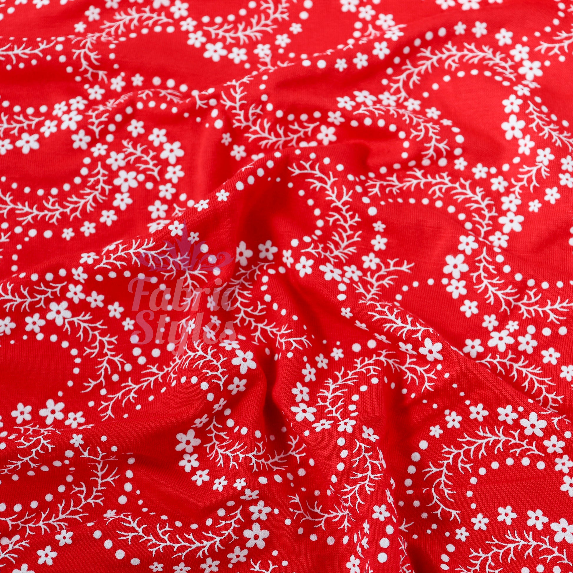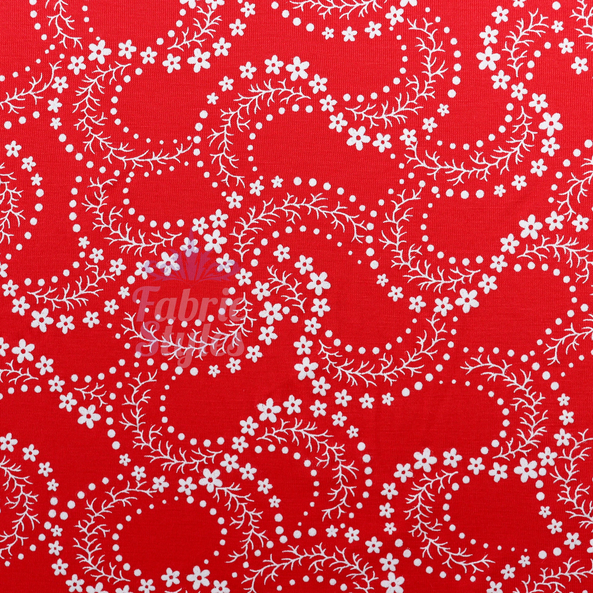 Red Swirl Floral Viscose Elastane Fabric
