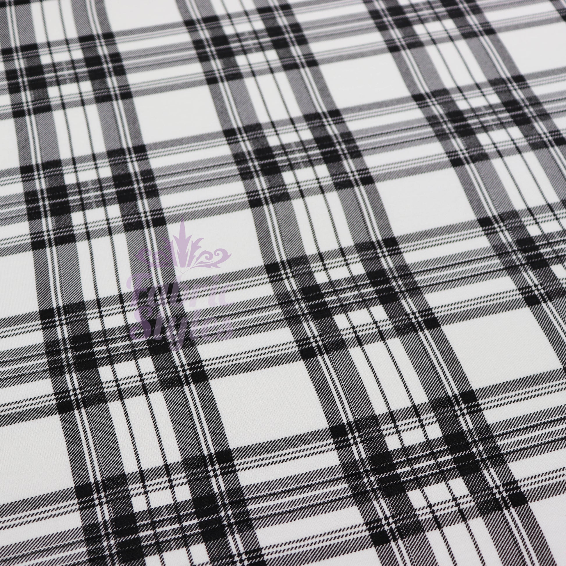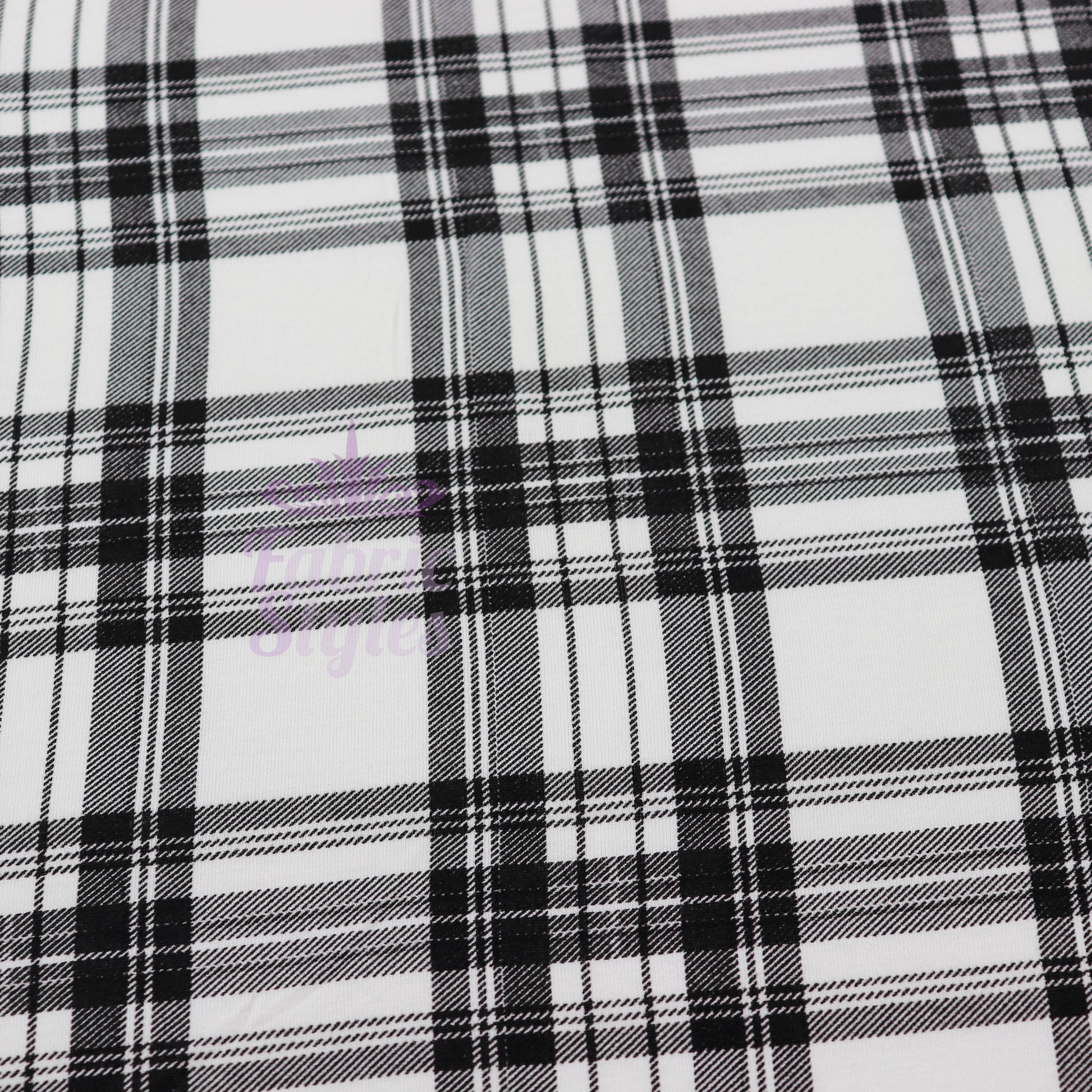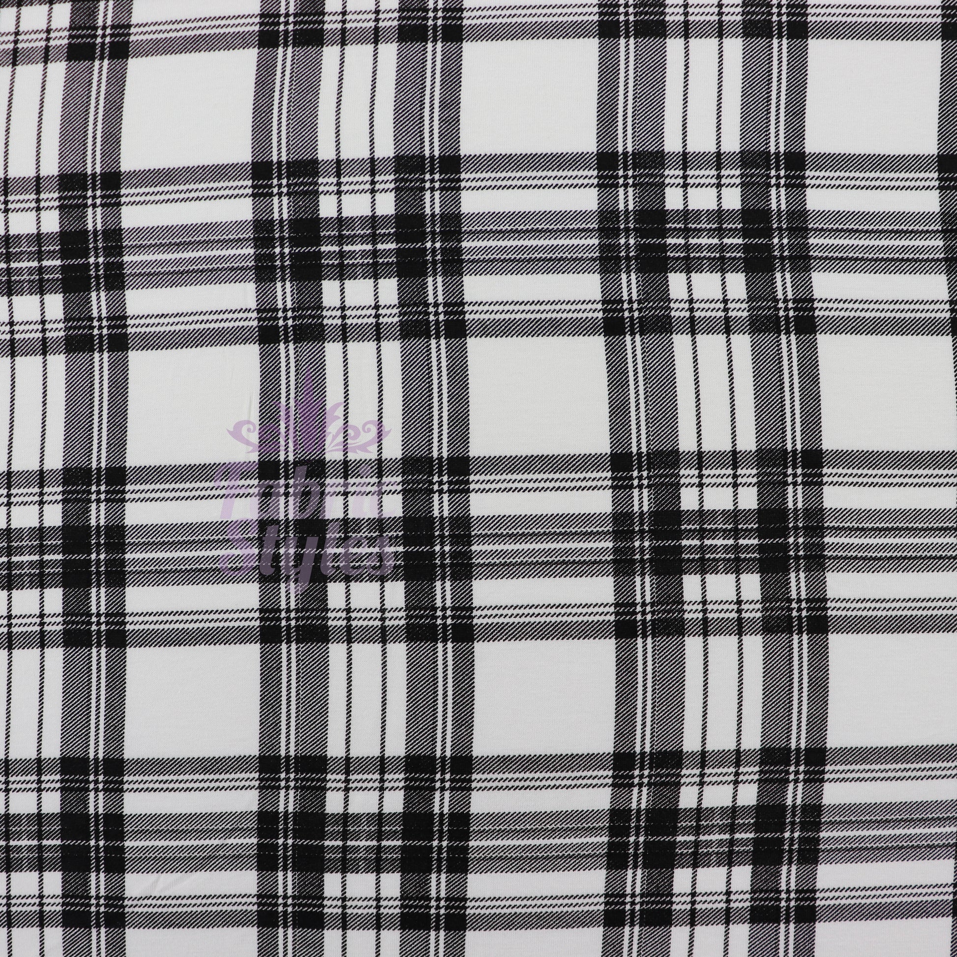 Tartan Plaid Black Viscose Elastane Fabric