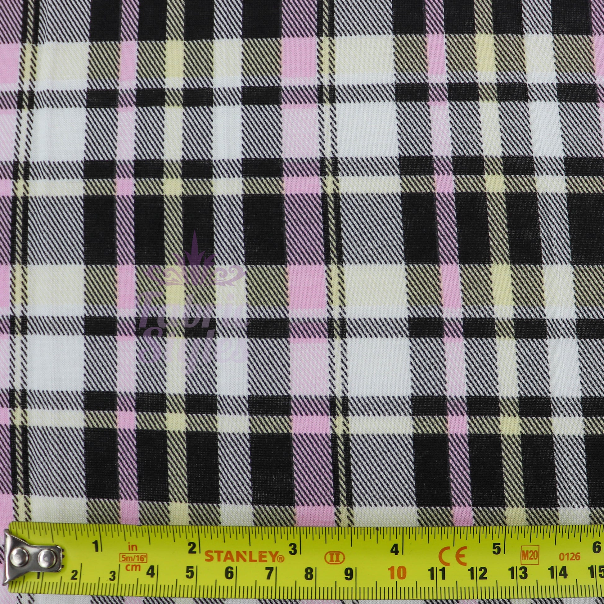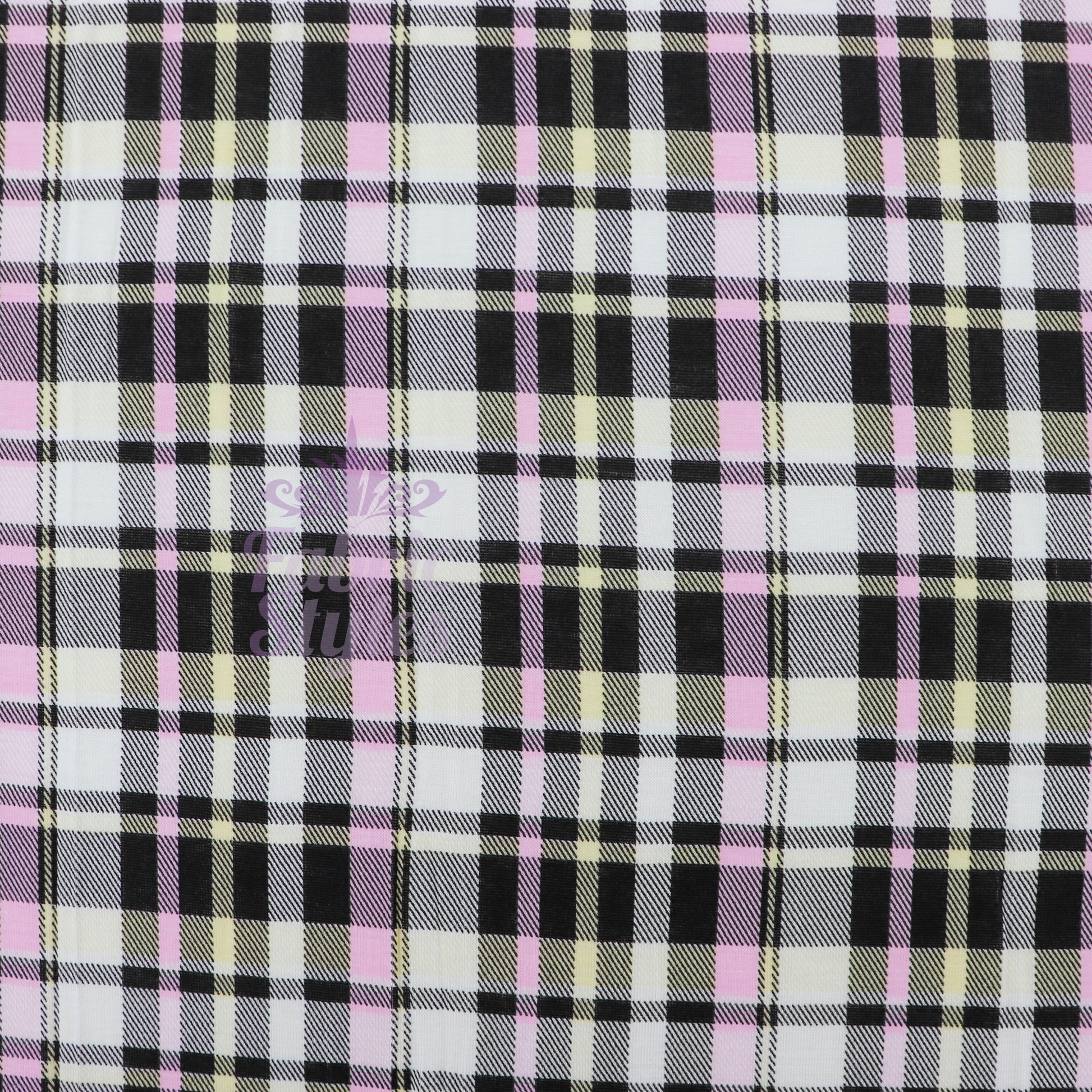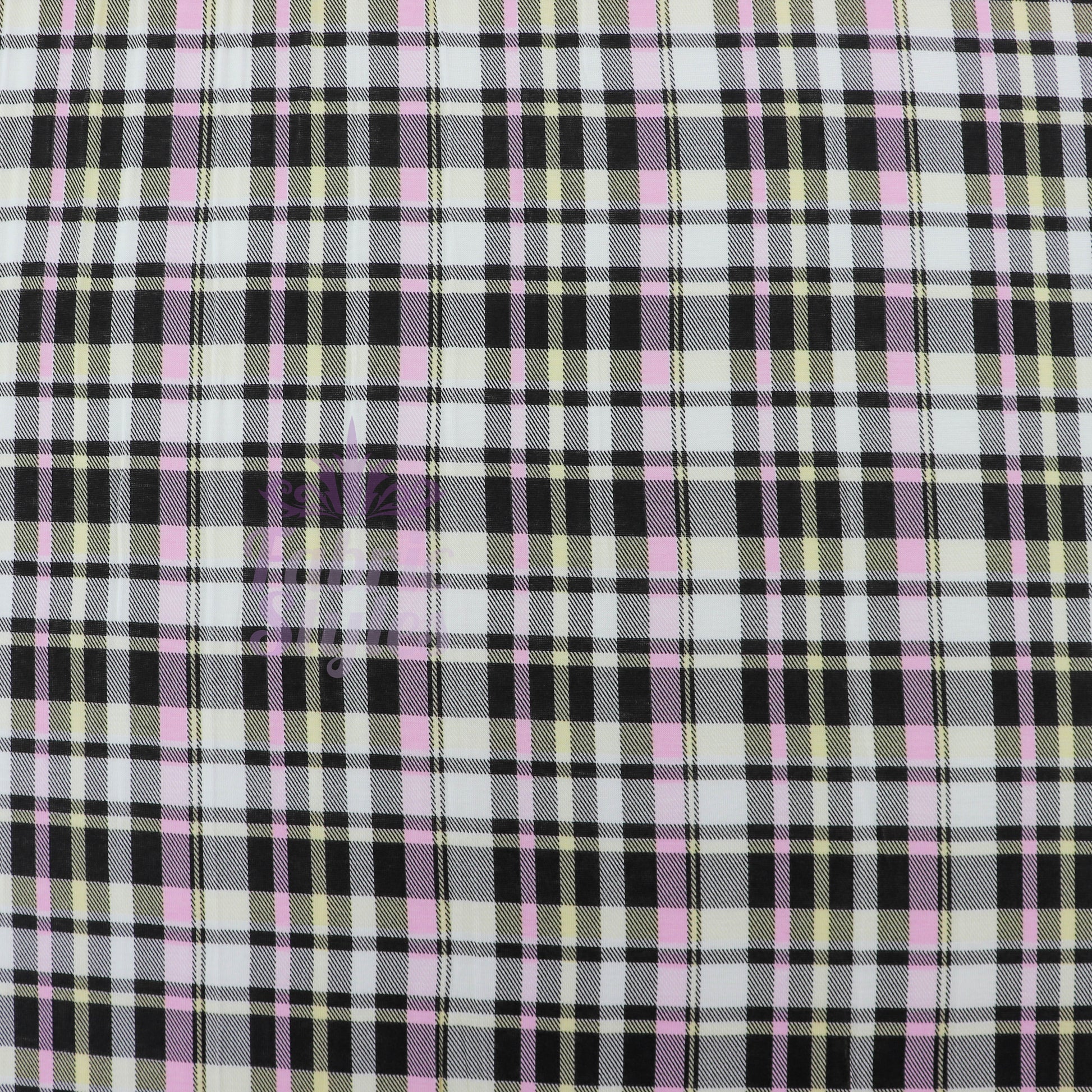 Tartan Yellow Pink Black Viscose Elastane Fabric